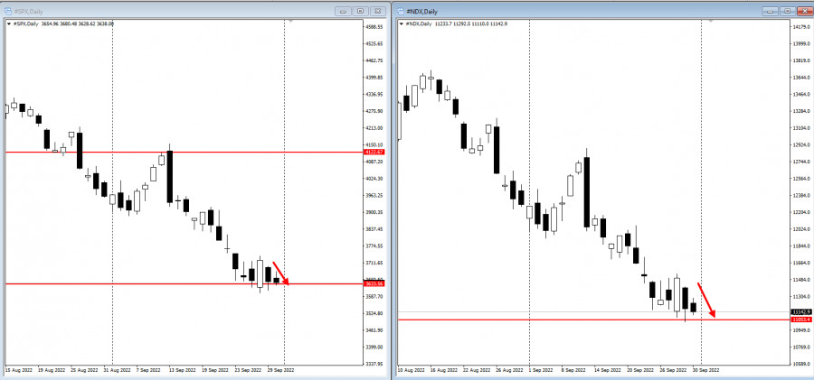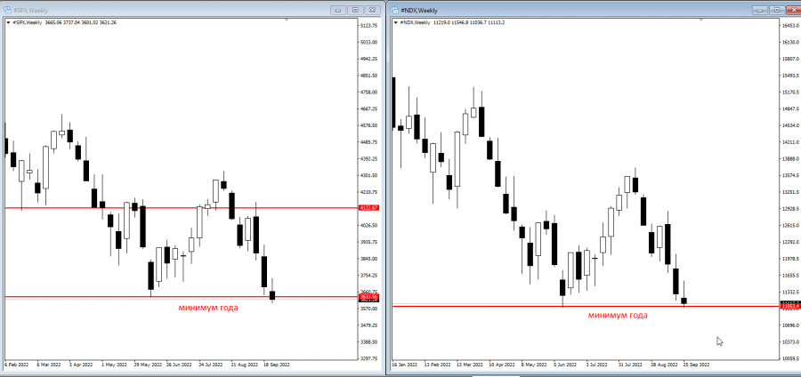Фондовые рынки снова закрывают неделю в минусеИнстаФорекс - Instaforex, 3 года назад Казначейские облигации США выросли, а фьючерсы на акции снова снизились после того, как потребительские расходы выросли больше, чем ожидалось, а ключевой показатель инфляции набрал обороты. Доходность 10-летних казначейских облигаций упала на 10 базисных пунктов, что дало некоторую передышку акциям, которые были взволнованы волатильностью долгового рынка на этой неделе. Контракты на S & P 500 снижались вместе с контрактами на Nasdaq 100, торгуясь на минимальных уровнях недели и года: Рынки находятся на грани, поскольку трейдеры ожидают последних экономических данных, которые опубликованные в пятницу данные удержат ФРС на пути агрессивного повышения ставок. Тяжелая сессия на Уолл-стрит в четверг уже привела к тому, что S & P 500 упал на 2% до минимума почти за два года, а Nasdaq 100 упал почти на 4%. Индекс S & P 500 движется к падению третий квартал подряд впервые с 2009 года, а фондовый индекс Nasdaq 100 - впервые за 20 лет. Европейские фондовые индексы так же находятся в "газовом пике": Опасения по поводу глобальной рецессии усиливаются, поскольку угроза повышения ставок подрывает экономический рост. Пример Великобритании показывает, как разногласия между правительством и политикой центрального банка по борьбе с инфляцией могут перерасти в кризис. Надежды на то, что британское правительство поддастся давлению и отступит от снижения налогов, которое привело фунт к границе паритета с долларом, испарились. Глобальные фонды акций собрали 7,6 миллиарда долларов за неделю.. Данные показали, что отток средств из облигаций составил 13,7 миллиарда долларов за неделю, в то время как 8,9 миллиарда долларов поступили в акции США. Индекс Московской Биржи нашел поддержку на 1900 после обращения Владимира Путина сегодня днём: Ключевые события этой недели: