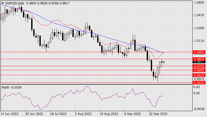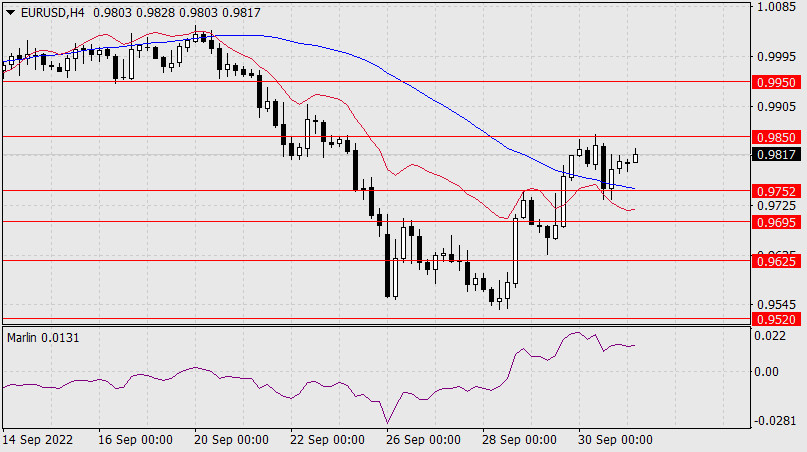 Прогноз по EUR/USD на 3 октября 2022 годаИнстаФорекс - Instaforex, 3 года назад В прошедшую пятницу евро проторговался в диапазоне целевых уровней 0.9752-0.9850, закрыв день с понижением в 12 пунктов. Осциллятор Марлин дневного масштаба развернулся вбок – в нейтральное состояние, пусть оно и на отрицательной территории. Сегодня по еврозоне ожидается нейтральный PMI в производственном секторе за сентябрь – то есть сохранение его на прежнем значении 48,5 пунктов, а по американскому ISM Manufacturing PMI прогнозируется ослаблением с 52,8 до 52,2. Как следствие, мы ждём ещё некоторую задержку евро в диапазоне 0.9695-0.9850. Пожалуй, лишь закрепление цены под 0.9695, то есть под закрытием 23-го сентября, когда евро обвалился на 150 пунктов, тенденция укрепится в новом нисходящем импульсе.