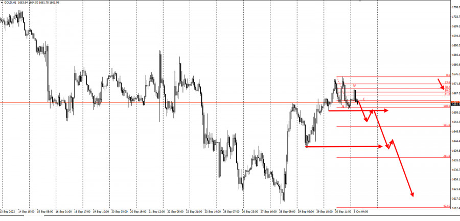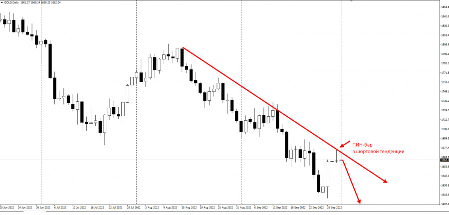 Торговая идея по GOLDИнстаФорекс - Instaforex, 3 года назад Добрый день, уважаемые трейдеры! Представляю вашему вниманию торговую идею по золоту. Итак, золото продолжает находиться в шортовой тенденции под давлением в США и циклом повышений процентных ставок и после обновления минимумов 2021 года, следующей глобальной целью будет уровень образованный в 2019 году по котировке 1445: По закрытию пятницы, имеем пин-бар, указывающий на замедление бычьей коррекции прошлой недели, после которого возможно продолжение шортовой тенденции: Предлагаем торговую идею на понижение курса золота по следующей схеме: Фактически имеем трёхволновую структуру "АВС", где волной "А" выступает шортовая инициатива пятницы. 1. 1658 2. 1640 3. 1614 4. 1447