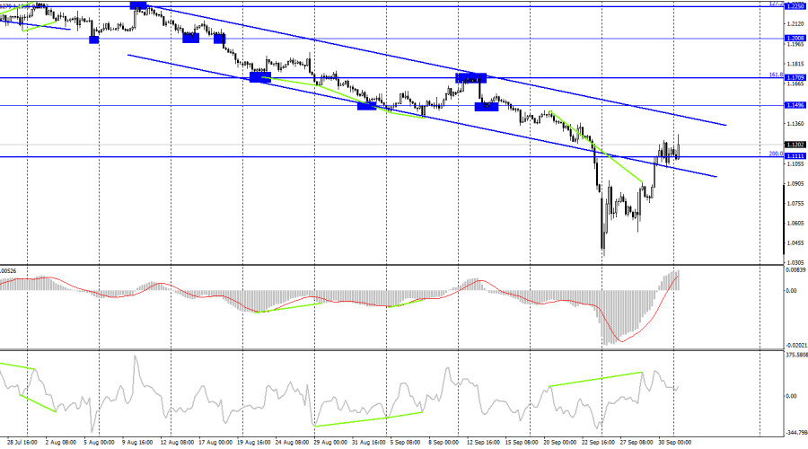 Добрый день, уважаемые трейдеры! На часовом графике пара GBP/USD выполнила закрытие над нисходящей линией тренда, что повышает вероятность ее дальнейшего роста в направлении уровней 1,1308 и 1,1480. Фунт стерлингов очень быстро восстановился от последнего потрясения, но новостной фон не замирает на месте на долгое время. Будут поступать свежие данные экономического и геополитического толка, которые могут вызвать новый рост американской валюты. В конце недели выйдет отчет Nonfarm Payrolls, который трейдеры отрабатывают практически всегда. С точки зрения действий ФРС по противостоянию инфляции, этот отчет имеет огромное значение. В последнее время члены FOMC неоднократно заявляли, что текущая рецессия в американской экономике – это лишь «техническая рецессия». Экономика сокращается, но рецессия не обладает всеми признаками «классической рецессии» с увольнениями, сокращениями, банкротствами, падением уровня жизни и ростом безработицы. А каждый следующий отчет Nonfarm Payrolls подтверждает слова членов денежно-кредитного комитета, так как рабочие места в США создаются в достаточном количестве, а безработица остается на практически минимальном значении за последние 50 лет. Однако если Пэйроллы начнут падать в объемах, то доверие к американской экономике может начать снижаться. Вряд ли оно снизится настолько, что возникнет больший интерес к британской экономике, но британец может на некоторое время получить поддержку. Однако, несмотря на то что линия тренда на часовом графике не выдержала напора быков, я бы не стал сейчас прогнозировать дальнейший сильный рост фунта. Он возможен, но пока что не выглядит «весьма вероятным». После того как британец падал больше года, причем падал очень сильно, очень сложно буквально за одну неделю перестать верить в доллар США. В Британии сейчас очень много проблем экономического характера, которые могут сдерживать желание трейдеров покупать фунт. Но еще пипсов на 200 британец может вырасти в течение этой недели. На 4-часовом графике пара возобновила процесс роста в направлении верхней линии нисходящего трендового коридора. «Медвежья» дивергенция очень быстро отменилась, так как ее пик был пройден. Закрепление котировок над уровнем Фибо 200,0% - 1,1111 тоже повышает вероятность дальнейшего роста. Медведи еще не полностью покинули рынок, но находятся в процессе. Отчет Commitments of Traders (COT):
