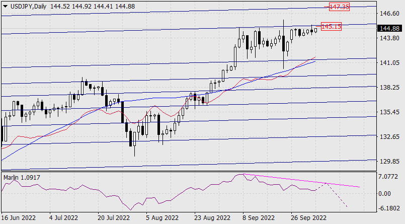 Прогноз по USD/JPY на 4 октября 2022 годаИнстаФорекс - Instaforex, 3 года назад Пара USD/JPY ещё один день продержалась под сопротивлением ближайшей линии ценового канала (145.15). Инвесторы опасаются покупать доллар, помятуя интервенцию Центробанка 22-го сентября. Но краткосрочный рост всё же возможен, цель 147.35 может быть отработана, вследствие чего с осциллятором Марлин сформируется дивергенция, и валютная пара развернётся в среднесрочное понижение.