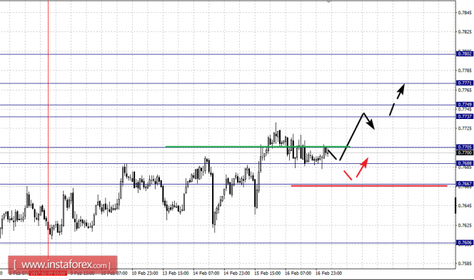 По паре Евро/Доллар ключевыми уровнями в масштабе Н1 являются: 1.0840, 1.0799, 1.0715, 1.0689, 1.0642, 1.0617, 1.0576 и 1.0517. Здесь мы следим за формированием восходящей структуры от 15 февраля. Краткосрочное движение кверху ожидаем в коридоре 1.0689 – 1.0715, пробой последнего значения должен сопровождаться выраженным движением к уровню 1.0799. Потенциальным значением для верха считаем уровень 1.0840, по достижении которого ожидаем консолидацию в коридоре 1.0780 – 1.0840. Краткосрочное движение в зоне начальных условий ожидаем в диапазоне 1.0642 – 1.0617, пробой последнего значения приведет к углубленному движению, здесь цель – 1.0576, этот уровень является ключевой поддержкой для верха. Основная тенденция – формирование восходящей структуры от 15 февраля. Торговые рекомендации: Buy: 1.0690 Take profit: 1.0715 Buy: 1.0720 Take profit: 1.0796 Sell: 1.0642 Take profit: 1.0618 Sell: 1.0615 Take profit: 1.0580 По паре Фунт/Доллар ключевыми уровнями в масштабе Н1 являются: 1.3093, 1.2947, 1.2860, 1.2742, 1.2621, 1.2518, 1.2398 и 1.2267. Здесь ситуация вошла в равновесную ситуацию. Краткосрочное восходящее движение возможно в коридоре 1.2518 – 1.2621. Продолжения движения кверху ожидаем после пробоя 1.2621, в данном случае первая цель - 1.2742, пробой которого приведет к движению до 1.2860, в коридоре 1.2860 – 1.2947 краткосрочное восходящее движение и отсюда ожидаем разворот в коррекцию. Потенциальным значением для верха в масштабе Н1 рассматриваем уровень 1.3093. Краткосрочное нисходящее движение, а также консолидация возможны в коридоре 1.2518 – 1.2398, пробой последнего значения приведет к развитию нисходящей структуры, в данном случае цель – 1.2267. Основная тенденция – равновесная ситуация. Торговые рекомендации: Buy: 1.2520 Take profit: 1.2620 Buy: 1.2625 Take profit: 1.2740 Sell: 1.2395 Take profit: 1.2270 Sell: Take profit: По паре Доллар/Франк ключевыми уровнями в масштабе Н1 являются: 1.0118, 1.0061, 1.0024, 1.0002, 0.9957, 0.9932, 0.9873 и 0.9850. Здесь мы следим за формированием нисходящей структуры от 15 февраля. Краткосрочное движение книзу ожидаем в коридоре 0.9957 – 0.9932, пробой последнего значения должен сопровождаться выраженным движением к уровню 0.9873. Потенциальным значением для низа считаем уровень 0.9850, по достижении которого ожидаем консолидацию. Краткосрочное восходящее движение возможно в коридоре 1.0002 – 1.0024, пробой последнего значения приведет к углубленному движению, здесь цель – 1.0061, этот уровень является ключевой поддержкой для низа. Основная тенденция – формирование нисходящей структуры от 15 февраля. Торговые рекомендации: Buy: 1.0002 Take profit: 1.0020 Buy: 1.0026 Take profit: 1.0060 Sell: 0.9955 Take profit: 0.9934 Sell: 0.9930 Take profit: 0.9880 По паре Доллар/Иена ключевыми уровнями в масштабе являются: 116.12, 115.54, 114.43, 114.04, 113.31, 112.98, 112.46 и 111.62. Здесь мы продолжаем следить за формированием восходящей структуры от 8 февраля. Продолжения движения кверху ожидаем после прохода ценой шумового диапазона 114.04 – 114.43, в данном случае цель – 115.54. Потенциальным значением для верха считаем уровень 116.12, по достижении которого ожидаем консолидацию. Краткосрочное нисходящее движение возможно в коридоре 113.31 – 112.98, пробой последнего значения приведет к углубленному движению, здесь цель – 112.46, этот уровень является ключевой поддержкой для верха. Основная тенденция – восходящая структура от 8 февраля. Торговые рекомендации: Buy: 114.50 Take profit: 115.50 Buy: 114.56 Take profit: 116.10 Sell: 113.30 Take profit: 113.00 Sell: 112.95 Take profit: 112.48 По паре Канадский доллар/Доллар ключевыми уровнями в масштабе Н1 являются: 1.3446, 1.3386, 1.3267, 1.3225, 1.3166, 1.3066, 1.3031 и 1.2979. Здес