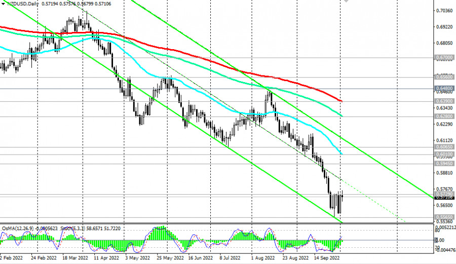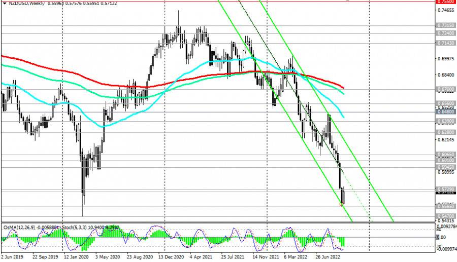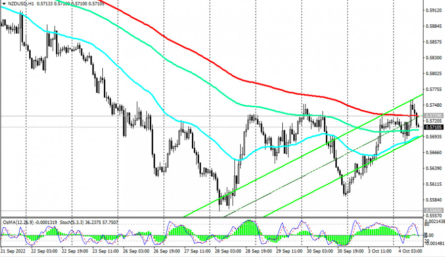 NZD/USD: технический анализ и торговые рекомендации на 04.10.2022ИнстаФорекс - Instaforex, 3 года назад Как мы отметили в нашем сегодняшнем «Фундаментальном анализе», «NZD/USD торгуется уже 7-й день подряд в диапазоне» в ожидании новых драйверов для движения в ту или иную сторону. Возможно, завтрашнее решение РБНЗ, предположили мы, и станет таковым. Слабеющий американский доллар дает повод для движения NZD/USD «на север», и в случае пробоя важного краткосрочного уровня сопротивления 0.5729 (ЕМА200 на 1-часовом графике) и локального уровня сопротивления и сегодняшнего максимума 0.5757 рост NZD/USD может продолжиться вплоть до уровней сопротивления 0.5945 (ЕМА200 на 4-часовом графике), 0.6010 (ЕМА50 на дневном графике). Выше – вряд ли, учитывая глобальный нисходящий тренд NZD/USD. Первым же сигналом для возобновления коротких позиций может стать пробой ближайших уровней поддержки 0.5693 (ЕМА200 на 15-минутном графике), 0.5680 (сегодняшний минимум). А сегодня волатильность в паре NZD/USD может вновь повыситься (в 14:00 GMT), что будет связано с публикацией важной макро статистики по США и Новой Зеландии, а также в 13:00, 13:15, 15:00, 17:00 (на это время запланированы выступления представителей руководства ФРС и ЕЦБ - подробнее см. в Важнейшие экономические события недели 03.10.2022 – 09.10.2022). В целом же, преобладает нисходящая динамика NZD/USD, в то время как пара остается в зоне долгосрочного медвежьего рынка - ниже ключевых уровней сопротивления 0.6700 (ЕМА200 на недельном графике), 0.6390 (ЕМА200 на дневном графике). Лишь их пробой вновь выведет пару в зону долгосрочного бычьего рынка. *) об особенностях торговли NZD также см. в статьях