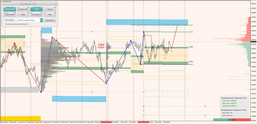 Среднесрочная тенденция: в лонг. Максимальное скопление объемов среднесрочной тенденции расположено в диапазоне по котировкам 0.65003-0.65085. В настоящий момент по паре совершаются инвестиционные операции выше, указывая на силу покупателей.