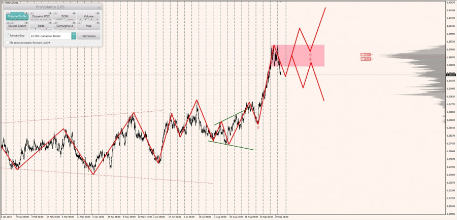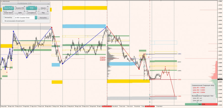 Среднесрочная тенденция: в шорт. Максимальное скопление объемов среднесрочной тенденции расположено в диапазоне по котировкам 1.36271-1.36417. В настоящий момент по паре совершаются инвестиционные операции ниже, указывая на силу продавцов.