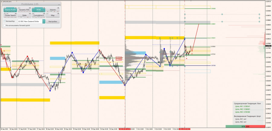 Среднесрочная тенденция: в лонг. Максимальное скопление объемов среднесрочной тенденции расположено в диапазоне по котировкам 0.57066-0.57165. В настоящий момент по паре совершаются инвестиционные операции выше, указывая на силу покупателей.