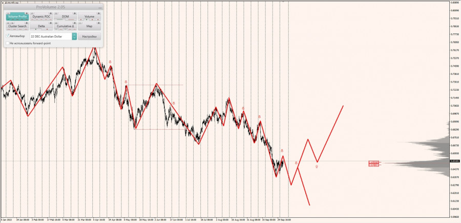 Долгосрочная тенденция: в шорт. Максимальное скопление объемов расположено в диапазоне по котировкам 0.64801-0.65065. В настоящий момент по паре совершаются инвестиционные операции выше, указывая на слабость продавцов.