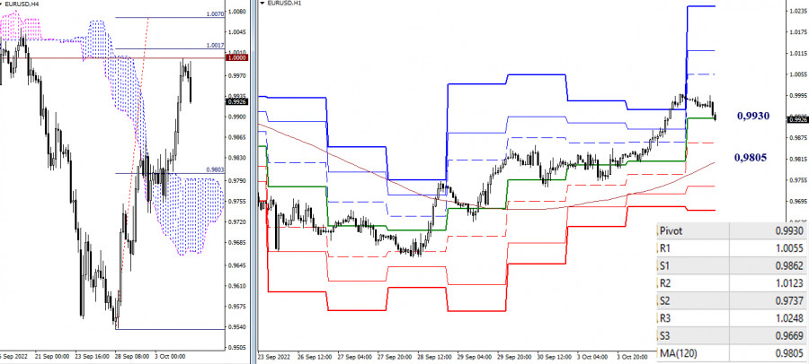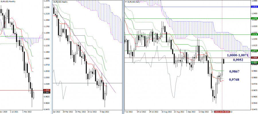 EUR/USD и GBP/USD 5 октября – рекомендации технического анализаИнстаФорекс - Instaforex, 3 года назад EUR/USD Старшие таймфреймы Вчера игроки на повышение продолжили подъём и приступили к тестированию достаточно широкой зоны сопротивления. Пробой встреченной зоны и надёжное закрепление выше значительно укрепят позиции игроков на повышение, что откроет перед ними новые перспективы. Встреченная зона сопротивлений включает в себя 0,9952 (недельный краткосрочный тренд + заключительный уровень дневного креста Ишимоку) – 1,0000 (психологический уровень) – 1,0071 (недельный уровень + нижняя граница дневного облака). Дневные среднесрочный (0,9867) и краткосрочный (0,9768) тренды сохраняют сейчас роль ближайших поддержек. Н4 – Н1 Встреча с психологическим уровнем 1,0000 вновь привела к торможению и коррекции. На младших временных интервалах в настоящий момент основное преимущество принадлежит игрокам на повышение. При пробое 1,0000 следующими ориентирами здесь станут классические Пивот-уровни (1,0055 – 1,0123 – 1,0248) и цель на пробой облака Н4 (1,0017 – 1,0070). Ключевые уровни младших таймов сегодня выступают в роли поддержек, которые расположены на 0,9930 (центральный Пивот-уровень) и 0,9805 (недельная долгосрочная тенденция). Пробой может изменить сложившийся баланс сил. *** GBP/USD Старшие таймфреймы Игроки на повышение стремятся преодолеть встреченную зону сопротивлений 1,1317 – 1,1411 – 1,1421 (недельные уровни + историческая поддержка). Пробой позволит опереться на данные уровни для продолжения подъёма к следующим важным и сильным сопротивлениям, таким как 1,1751 (недельный среднесрочный тренд) и 1,1842 (месячный уровень + дневное облако). Пройденные ранее уровни дневного креста Ишимоку сейчас служат ближайшими поддержками, их можно отметить на 1,1209 (заключительный уровень дневного креста) – 1,1046 (среднесрочный тренд) – 1,0925 (краткосрочный тренд). Н4 – Н1 Основное преимущество на младших таймфреймах принадлежит игрокам на повышение. Быкам удалось отработать первый целевой ориентир цели на пробой облака Н4 (1,1464). Следующие повышательные ориентиры расположены сейчас на 1,1588 (100% отработка цели Н4) и 1,1547 – 1,1622 – 1,1756. Сейчас пара находится в зоне консолидации и притяжения, обусловленного центральным Пивот-уровнем (1,1413). В случае развития снижения всё внимание будет направлено на ключевой уровень – недельную долгосрочную тенденцию (1,1145). Промежуточные поддержки могут оказать 1,1338 и 1,1204 (классические Пивот-уровни). *** При техническом анализе ситуации используются: старшие таймфреймы – Ichimoku Kinko Hyo (9.26.52) + уровни Фибо Киджун Н1 – Pivot Points (классические) + Moving Avarage 120 (недельная долгосрочная тенденция) Материал предоставлен компанией InstaForex - www.instaforex.com |