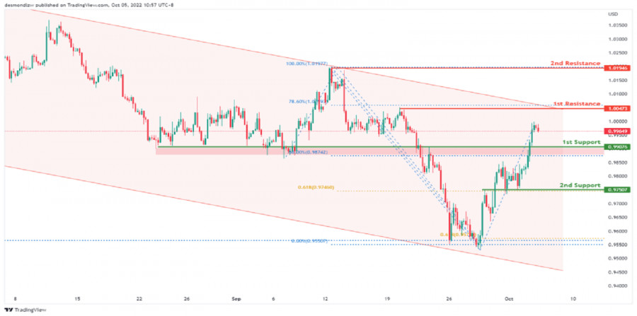 EUR/USD: ожидается дальнейшее развитие восходящей тенденции. Прогноз на 5 октября 2022ИнстаФорекс - Instaforex, 3 года назад На 4-часовом графике пара EUR/USD отскочила от уровня поддержки и сейчас торгуется в восходящем направлении, что указывает на бычий импульс. Цена движется к 1-му уровню сопротивления 1.00473, соответствующему 78.6% уровню коррекции Фибоначчи и перекрытию, выступающему в роли сопротивления. Если пара пробьет этот уровень, бычий импульс направит цену ко 2-му уровню сопротивления 1.01946, где расположен предыдущий уровень свинг-хай. В качестве альтернативы цена может откатиться, чтобы протестировать 1-й уровень поддержки 0.99076, соответствующий уровню коррекции Фибоначчи 38.2%, а затем 2-й уровень поддержки 0.97507, который соответствует уровню расширения Фибоначчи 138.2%. Торговая рекомендация Вход: 0.9907 Условия для входа: вход в покупку на откате от уровня коррекции Фибоначчи 50% Тейк-профит: 1.0047 Условия для фиксации прибыли: 78.6% уровень коррекции Фибоначчи Стоп-лосс: 0.9750 Условия для активации ордера стоп-лосс: предыдущий уровень свинг-лоу и уровень коррекции Фибоначчи 38.2% Материал предоставлен компанией InstaForex - www.instaforex.com |