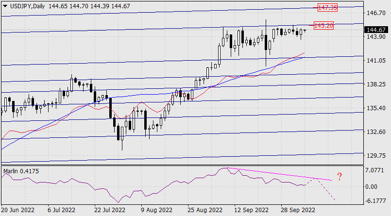 Прогноз по USD/JPY на 6 октября 2022 годаИнстаФорекс - Instaforex, 3 года назад Пара USD/JPY продолжает консолидацию под наклонной восходящей линией ценового канала месячного масштаба. Вероятно, инвесторы ждут завтрашних данных по американской занятости, чтобы вместе с остальным рынком уверенно возобновить покупки доллара. Перспектива роста всё же представляется не очень продолжительной, наш основной сценарий предполагает отработку ближайшего сопротивления по линии ценового канала в районе 147.35, где цена с осциллятором Марлин могут сформировать дивергенцию и последующий разворот.