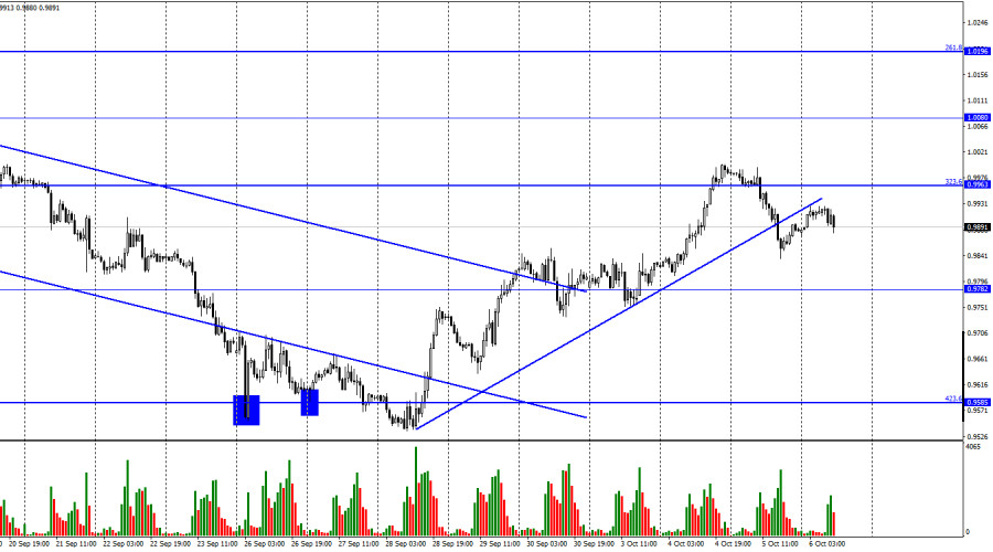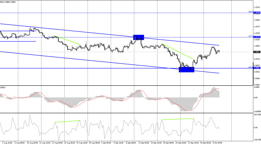 EUR/USD. 6 октября. Goldman Sachs не ждет рецессии в США в годовом выраженииИнстаФорекс - Instaforex, 3 года назад Добрый день, уважаемые трейдеры! Пара EUR/USD выполнила вчера разворот в пользу американской валюты и закрепление под восходящей линией тренда. Таким образом, временно настроение трейдеров изменилось на «медвежье», а я боюсь, чтобы эта смена настроения не стала предвестником очередного обвала валюты ЕС. Даже учитывая рост за последнюю неделю, европейская валюта не выросла настолько, чтобы ставить крест на нисходящем тренде на дневном графике. Закрепление ниже линии тренда означает, что некоторое время евро может падать. Падение к уровню 0,9782 будет означать, что пара находится всего лишь в 200 пипсах от своих 20-летних лоу. О каком же восходящем тренде может говорить в такой ситуации? Если британец показал действительно сильный рост, который может означать изменение долгосрочного настроения трейдеров на «бычье», то о евровалюте такого сказать нельзя. Тем временем для американского доллара есть и другие хорошие новости. Вчера стало известно, что экономисты Goldman Sachs прогнозируют рост ВВП США в 2022 году на 1,6%, а в 2023 году на 0,9%. Это означает, что рецессия может быть заметна только при изучении квартальных отчетов ВВП, но не годовых. Так как годовые данные являются все же более важными, американская экономика может избежать рецессии, хотя некоторые ее признаки имеются уже сейчас и отрицать спад в экономике нельзя. Напомню, что последний отчет по безработице показал рост на 0,2%, последние отчеты по рынку труда были противоречивыми. Уже завтра выйдет Nonfarm Payrolls, который может либо подтвердить мои опасения, либо опровергнуть их. Если число новых рабочих мест будет высоким, тогда опасаться американской экономике будет нечего, по крайней мере еще несколько месяцев. Небольшой спад – это не рецессия, а Джером Пауэлл и ФРС могут избежать возникновения этого экономического явления за счет высоких темпов роста в предыдущий год. На 4-часовом графике пара выполнила новый разворот в пользу валюты ЕС и возобновила процесс роста в направлении верхней линии нисходящего трендового коридора. Коридор продолжает характеризовать настроение трейдеров, как «медвежье», что заставляет меня с осторожностью относится ко всякого рода прогнозам о будущем сильном росте евровалюты. Закрепление курса пары над коридором повысит вероятность роста пары в направлении уровней 1,0173 и 1,0638. Отчет Commitments of Traders (COT):