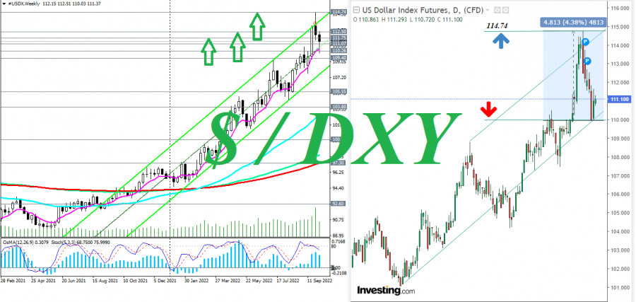 Доллар: перспективы (до конца этой недели и после)ИнстаФорекс - Instaforex, 3 года назад Опубликованная в среду американская макро статистика оказалась позитивной и смогла поддержать доллар. Он вырос в среду, а его индекс DXY прибавил по итогам торгового дня 0,85%. На момент публикации данной статьи фьючерсы DXY торгуются вблизи отметки 111.10, на 114 пунктов выше минимума этой недели, достигнутого в минувший вторник. Как сообщили в Automatic Data Processing (ADP), занятость в частном секторе США выросла в сентябре на 208 000 (против ожиданий рынка о росте на +200 000 и предыдущего значения за август в +185 000, пересмотренного с +132 000). В ADP прокомментировали эти данные, заявив, что «у тех, кто остался на работе, зарплата выросла, а у тех, кто сменил работу, годовой рост зарплаты в сентябре снизился по сравнению с августом". Хотя прямой корреляции с Non-Farm Payrolls у отчета ADP не отмечается, он все же имеет достаточно сильное влияние на динамику доллара, и рост его показателей позитивно отражается на котировках американской валюты. Другие отчеты (от S&P Global и ISM) также оказались позитивными для доллара. Согласно представленным данным, бизнес-активность в секторе услуг США продолжала расти в сентябре, хотя и немного медленнее, чем в августе. Индекс PMI для сферы услуг (от ISM), хоть и снизился до 56.7 с 56.9, показатель оказался лучше ожиданий рынка в 56. Индекс занятости (от ISM) улучшился до 53 с 50.2. Как сказали в Комитете ISM по исследованию деловой активности в сфере услуг, "в сентябре в секторе услуг наблюдалось небольшое снижение темпов роста из-за снижения деловой активности и новых заказов», однако «наблюдаются улучшения в отношении эффективности цепочки поставок, операционных мощностей и доступности материалов» - показатели остаются «менее чем идеальными". В свою очередь, в S&P Global сказали, что «в сентябре появились обнадеживающие сигналы о том, что условия ведения бизнеса могут начать улучшаться". Теперь участники рынка будут ждать публикации в пятницу (в начале американской торговой сессии) отчета Минтруда с данными по рынку труда США за сентябрь. Предыдущие значения отчета (средняя почасовая заработная плата / количество новых рабочих мест, созданных вне сельскохозяйственного сектора / уровень безработицы): +0,3% в августе, +0,5% в июле, +0,3% в июне, мае и апреле, +0,4% в марте, 0% в феврале, +0,7% в январе 2022 года / 0,315 млн в августе, +0,528 млн в июле, +0,372 млн в июне, +0,390 млн в мае, +0,428 млн в апреле, +0,431 млн, +0,678 млн в феврале, +0,467 млн в январе 2022 года / 3,7% в августе, 3,5% в июле, 3,6% в июне, мае, апреле и марте, 3,8% в феврале, 4,0% в январе 2022 года. Прогноз на сентябрь: +0,3% / +0,250 млн / 3,7%, соответственно. Показатели можно назвать, если не сильными, то весьма позитивными. При этом, безработица остается на минимальных уровнях. Надо отметить, что участники рынка ждут дальнейших решительных шагов со стороны ФРС по пути ужесточения монетарной политики. Недавние ястребиные комментарии руководителей ФРС возродили ожидания еще одного значительного повышения ставки в ноябре. Индекс доллара США DXY сохраняет бычий импульс, а участники рынка, согласно данным CME Group, оценивают вероятность повышения ставки ФРС на 75 базисных пунктов в ноябре почти в 70%. Сегодняшний экономический календарь будет включать в себя новые выступления чиновников FOMC и отчет Минтруда с данными по динамике числа заявок на пособие по безработице. Поэтому волатильност