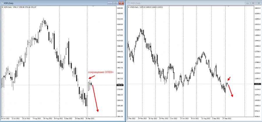 Растущая нефть давит на фондовые рынкиИнстаФорекс - Instaforex, 3 года назад Фьючерсы на фондовые индексы США упали, поскольку план альянса ОПЕК + по сокращению поставок нефти усилил опасения по поводу инфляции, а трейдеры ожидали данных по рынку труда, чтобы оценить риск рецессии. Фьючерсы на S & P 500 и Nasdaq 100 упали на 0,6%, в то время как европейский Stoxx50 снизился. Фьючерсы на американскую нефть выросли за неделю примерно на 11% после того, как нефтяной картель заявил, что сократит ежедневную добычу на 2 млн баррелей. В Европе Stoxx50 снизился, поскольку потери энергетических и страховых акций компенсировали рост акций в сфере недвижимости и путешествий. Акции Shell Plc упали на 4,6% после того, как энергетический гигант указал на более слабые показатели в третьем квартале. В то время как более высокие цены на энергоносители могут подстегнуть инфляцию, некоторые инвесторы предполагают, что они сократят спрос и ударят по доходам компаний, что потенциально побудит Федеральную резервную систему замедлить ужесточение денежно-кредитной политики. Хотя такие ожидания способствовали росту акций на этой неделе, несколько финансовых менеджеров предупреждают, что экономический путь к менее агрессивной ФРС может быть болезненным. "Если вы хотите опередить ФРС, вы играете в игру с очень высокими ставками", - сказал Кеннет Броу, стратег Societe Generale SA. "ФРС не хочет ослабления финансовых условий; они не хотят, чтобы рынки акций взлетели и стали слишком комфортными". Инвесторы опасаются делать крупные ставки на акции, поскольку ожидают отчета о первичных заявках на пособие по безработице в США в четверг и официальных данных по занятости в несельскохозяйственном секторе в пятницу. Опрос Bloomberg показывает, что экономика США добавила 260 000 рабочих мест в прошлом месяце; более высокая, чем ожидалось, цифра может напугать рынки. Чиновники ФРС изо всех сил старались подчеркнуть, что ожидания снижения ставок рынком в следующем году неуместны, на что указала президент ФРС Сан-Франциско Мэри Дейли. Банк намерен придерживаться жесткой политики, чтобы обеспечить инфляцию в 2%, добавила она. Индекс Московской Биржи закрепился выше 2000 после обвала на новостях референдумах и частичной мобилизации в России. Новости на этой неделе: