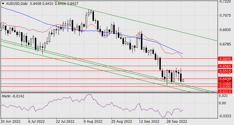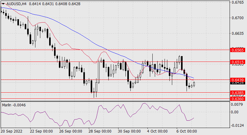 Прогноз по AUD/USD на 7 октября 2022 годаИнстаФорекс - Instaforex, 3 года назад Австралийский доллар вчера показал сильное падение от целевого уровня 0.6515 до целевого уровня 0.6385. Нижняя тень не дошла до нисходящей линии ценового канала несколько пунктов, но с учётом флуктуации, погрешности в графике, можно принять цель как отработанную, так как после неё произошёл отскок цены вверх. Также сигнальная линия осциллятора Марлин отреагировала на подскок цены небольшим разворотом вверх.