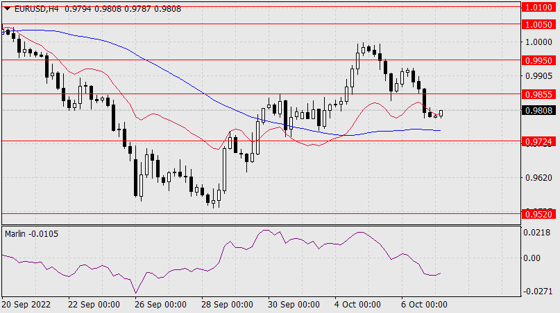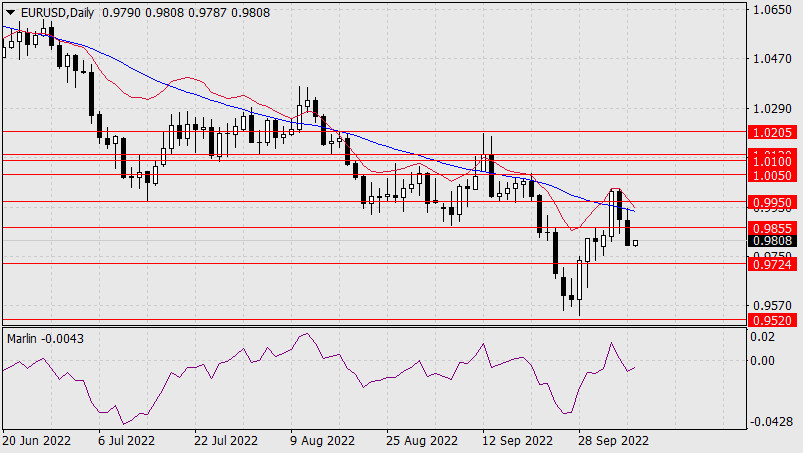 Прогноз по EUR/USD на 7 октября 2022 годаИнстаФорекс - Instaforex, 3 года назад Вчера евро с успехом преодолел поддержку 0.9855 и устремился по направлению к поддержке 0.9724. Евро снижается даже быстрее своего роста последних дней. Закрепление под 0.9724 открывает цель 0.9520. Осциллятор Марлин закрепился на отрицательной территории.