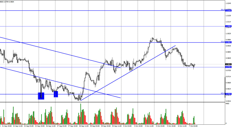 EUR/USD. 7 октября. Рынок замер в преддверии ПэйролловИнстаФорекс - Instaforex, 3 года назад Добрый день, уважаемые трейдеры! Пара EUR/USD выполнила вчера новый разворот в пользу американской валюты и падение к уровню 0,9782. Выполнить закрытие под ним не сумела, но и отбоя как такого тоже не произошло. Таким образом, трейдеры предпочитают сейчас просто подождать важной статистики из США, которая выйдет во второй половине дня. Последние два дня европейская валюта вновь падала и выполнила закрепление под восходящей линией тренда. Поэтому сегодняшний день очень важен для нее. Если она возобновит в пятницу рост, то последние два дня можно будет списать на нисходящую коррекцию, сохраняя «бычье» настроение. Однако если сегодня будет закрытие под 0,9782 и новое падение евро, то уже очень скоро котировки могут оказаться около уровня 0,9585, чуть ниже которого был последний лоу пары за последние 20 лет. С моей точки зрения, закрытие под уровнем 0,9782 будет означать, что медведи вернулись на рынок и опять будут на нем господствовать. Так чего же нам ждать от отчета по Пэйроллам? Прогнозы говорят, что по итогам сентября будет создано 250-290К рабочих мест, не учитывая сельскохозяйственный сектор. Примерно такой же прогноз мы видели месяцем ранее и еще месяцем ранее. Прогнозы по Nonfarm Payrolls всегда очень осторожные и отклониться от них очень легко. Я считаю, что любое значение отчета выше 300К вызовет новые покупки доллара США. А любое значение ниже воспримется как негативное и вызовет продажи доллара, что сейчас очень нужно евровалюте. Не стоит также забывать и о не менее значимом отчете по безработице. В прошлом месяце этот показатель вырос с 3,5% до 3,7%. Пока что это лишь единичный рост, но второй месяц подряд с повышением может говорить о негативной тенденции. Напомню, что ФРС очень внимательно следит за состоянием рынка труда и безработицей и корректирует денежно-кредитную политику с оглядкой на эти данные. На 4-часовом графике пара выполнила новый разворот в пользу американского доллара и начала новый процесс падения в направлении уровня Фибо 161,8% - 0,9581 и в пределах нисходящего трендового коридора. Таким образом, настроение трейдеров на этом графике остается «медвежьим» без каких-либо вопросов. Лишь закрепление над нисходящим коридором позволит рассчитывать на ощутимый рост евровалюты. Отчет Commitments of Traders (COT):