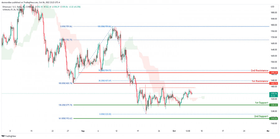 ETH/USD: ожидается усиление бычьего импульса. Прогноз на 7 октября 2022ИнстаФорекс - Instaforex, 3 года назад На 4-часовом графике пара ETH/USD торгуется в медвежьем тренде. Однако цена закрылась выше облака Ишимоку, что указывает на бычий импульс в краткосрочной перспективе. Ночью цена продолжила рост в восходящем направлении. Ожидается, что пара продолжит свой рост и укрепится до 1-го уровня сопротивления 1420.74, который соответствует последнему уровню свинг-лоу. Торговая рекомендация Вход: 1420.74 Условия для входа: уровень коррекции Фибоначчи 38.2%, уровень коррекции Фибоначчи 100%, предыдущий уровень свинг-лоу Тейк-профит: 1193.06 Условия для фиксации прибыли: уровень расширения Фибоначчи 161.8% Стоп-лосс: 1520.00 Условия для активации ордера стоп-лосс: чуть выше 50% уровня коррекции Фибоначчи Материал предоставлен компанией InstaForex - www.instaforex.com |