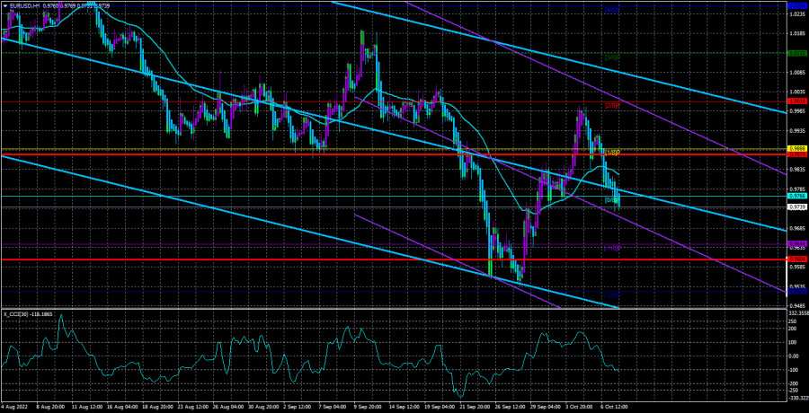 Обзор пары EUR/USD. 10 октября. Ключевой отчет предстоящей недели – американская инфляция.ИнстаФорекс - Instaforex, 3 года назад Валютная пара EUR/USD по итогам пятницы все-таки закрепилась ниже скользящей средней линии. Таким образом, как все мы уже могли привыкнуть, очередное потенциальное начало нового восходящего тренда завершилось обычной коррекцией на 450 пунктов. Конечно, это не означает, что со стопроцентной вероятностью пара теперь обновит еще раз свои 20-летние минимумы и будет двигаться только вниз. Но, к сожалению, геополитический фон остается таковым, что рисковые валюты не рассматриваются рынков в качестве инструмента, к которому есть доверие. Напомним, что ключевой новостью этих выходных стал подрыв Керченского моста. При чем не из-за ракетной атаки ВСУ, а из-за взрыва грузовика на самом мосту. Очевидно, что взорвался он не случайно, и рядом с ним проходящий локомотив с топливом тоже. Но в то же время эта ситуация больше похожа на подрыв «Северных потоков», чем на очевидную военную атаку. До сих пор непонятно, кто стоит за этой диверсией, а версий, как обычно, много. Пока что даже сложно сказать, что именно произошло и как вообще грузовик со взрывчаткой мог пройти через пропускные пункты? Однако нам важно даже не это, а тот факт, что эскалация военного конфликта между Западом и РФ усиливается. А это значит, что лучше в ближайшем будущем не будет. Будет хуже. С технической точки зрения, все надежды 24-часового ТФ тоже рухнули на прошлой неделе. Евровалюта очень быстро вернулась в область ниже критической линии, поэтому сейчас все идет к тому, что нисходящий тренд будет продолжен. Фундаментальный фон в текущих обстоятельствах уходит на второй план, однако и он не поддерживает европейскую валюту. Проблема с газом в Европе никуда не делась, проблема с высокими ценами на энергоносители и высокой инфляцией – тоже. Следовательно, если «фундамент» и не ухудшился, то уже совершенно точно не улучшился. Если этот же «фундамент» способствовал падению евро в последние 7-8 месяцев, то почему сейчас он должен оказывать поддержку? Была небольшая надежда на то, что медведи уже просто насытились распродажами евро, но, как видим, ей пока не суждено сбыться. ФРС вне зависимости от инфляции повысит ставку еще несколько раз.Как видно из названия статьи, наиболее важным отчетом новой недели будет инфляция в США. Сразу следует отметить, что эксперты не ждут сильного ее замедления по итогам сентября, прогнозы колеблются в диапазоне 8,1-8,2% при значении августа 8,3%. Как мы и говорили еще два месяца назад, одно сильное снижение индекса потребительских цен не означает, что теперь каждый месяц инфляция будет падать на 0,5-0,6%. Прошлый отчет показал ее замедление всего лишь на 0,2%, а новый может показать и того меньше. Следовательно, ФРС нельзя ослаблять «монетарный нажим» и нужно продолжать повышать ставку. Мы не верим в то, что на основании любых причин ФРС откажется от своего агрессивного подхода. Мы считаем, что на оставшихся двух заседаниях ставка будет повышена еще на 1,25%, а может еще 1-2 повышения мы увидим и в 2023 году. Это означает, что монетарная политика будет и дальше ужесточаться, стимулируя рынок к покупкам именно валюты США. ЕЦБ – далеко позади. Он тоже начал повышать ставку и тоже собирается перейти к агрессивному подходу. Но пройдет не менее полугода прежде, че