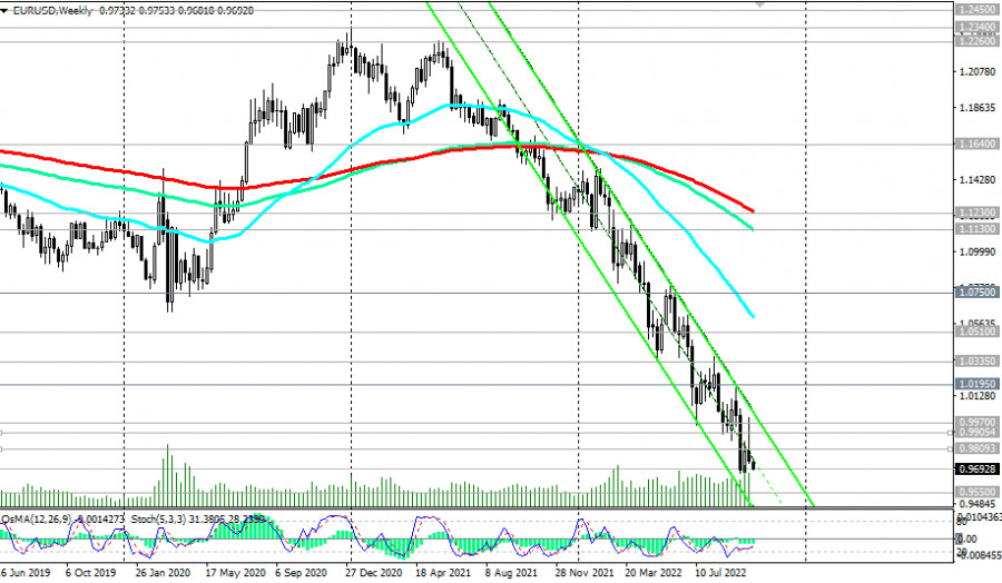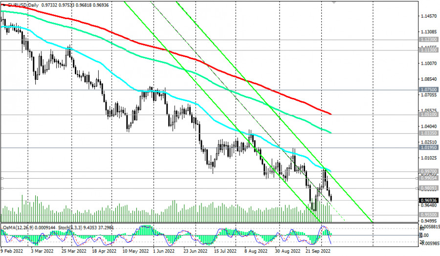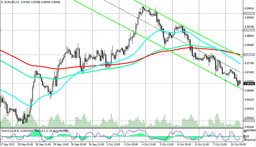 EUR/USD: технический анализ и торговые рекомендации на 10.10.2022ИнстаФорекс - Instaforex, 3 года назад Как мы отметили в нашем сегодняшнем «Фундаментальном анализе», «в целом, сохраняется нисходящая динамика EUR/USD». Пара остается в зоне медвежьего рынка - как долгосрочного (ниже уровней сопротивления 1.1130 (ЕМА144 на недельном графике), 1.1230 (ЕМА200 на недельном графике), 1.0510 (ЕМА200 дневном графике), так и краткосрочного - ниже уровней сопротивления 0.9810 (ЕМА200 на 1-часовом графике), 0.9905 (ЕМА200 на 4-часовом графике). Если доллар на этой неделе окажется под давлением (в случае «голубиной» риторики текста протоколов сентябрьского заседания ФРС и в случае разочаровывающих данных по инфляции в США – подробнее см. в Важнейшие экономические события недели 10.10.2022 – 16.10.2022), то у EUR/USD может появиться шанс немного восстановиться после сильнейшего падения на фиксации части длинных позиций по USD. В этом случае вероятен коррекционный рост к уровням сопротивления 0.9905, 0.9970 (ЕМА50 на дневном графике). Их пробой станет сигналом для реализации альтернативного сценария, подразумевающего более сильный коррекционный рост EUR/USD (с целью на уровнях сопротивления 1.0335, 1.0510. В основном же сценарии ожидаем дальнейшего снижения. Ближайшая цель – локальный минимум и уровень поддержки 0.9535. Далее – в сторону отметок 0.8700, 0.8600. *) см. также EUR/USD: валютная пара (характеристики, рекомендации) Уровни поддержки: 0.9700, 0.9600, 0.9535, 0.9500, 0.9400, 0.9300, 0.9200, 0.9000 Уровни сопротивления: 0.9800, 0.9810, 0.9900, 0.9970, 1.0195, 1.0335, 1.0510