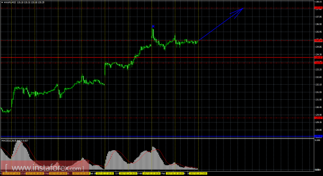 Технический и свечной анализ акций Apple на 17 февраля 2017 годаИнстаФорекс - Instaforex, 8 лет назад 4-часовой таймфрейм 15-минутный таймфрейм Техническая картина: Анализируя акции компании Apple 17 февраля, видим, что цена отработала уровень сопротивления 135,29, но не смогла закрепиться выше него. Текущий «золотой крест» является сильным (так как цена располагается выше облака), поэтому длинные позиции индикатор Ишимоку разрешает рассматривать. Старший канал линейной регрессии направлен вверх, младший канал также направлен вверх, поэтому ордера на покупку актуальны и по этому признаку. Целью для восходящего движения инструмента является второй уровень сопротивления 135,29, который уже достигнут. Второй целью для движения вверх выступает уровень сопротивления 137,69. Новых свечных моделей на данный момент нет. MACD развернулся вниз, что говорит о коррекционном движении, однако цена не понижается, соответственно, индикатор начал разряжаться. Стохастик находится в области перекупленности, что сейчас свидетельствует о восходящем настроении участников рынка и отсутствии коррекции. Отскок цены от уровня 135,29 может спровоцировать коррекционное движение. Младший таймфрейм детализирует картину старшего таймфрейма. На младшем графике также видно, что цена по-прежнему располагается выше линии Тенкан-сен и сохраняет перспективы движения вверх. Лонги сейчас сохраняют свою актуальность с целью уровень сопротивления 137,69 при уверенном преодолении уровня 135,29. Верхний фрактал указывает на возможную нисходящую коррекцию. Торговые рекомендации для 4-часового таймфрейма: Цена акций Apple продолжает движение вверх. На текущем графике рекомендуется рассматривать длинные позиции с целью 135,29. В случае преодоления этого уровня, таргетом будет выступать 137,69. Закрывать ордера на покупку рекомендуется в случае формирования «медвежьей» модели (с подтверждением), при отскоке цены от уровня 135,29 или при развороте индикатора MACD вниз (при параллельном понижении цены). Стоп лосс при торговле на повышение выставляем ниже критической линии 128,32. Ордера на продажу сейчас не актуальны. Торговые рекомендации для 15-минутного таймфрейма: На 15-минутном графике рекомендуется рассматривать ордера на покупку с целью 137,69, при закреплении цены выше 135,29, ордером Stop Loss ниже 135,29 и при направленном вверх индикаторе MACD. Помимо технической картины следует также учитывать фундаментальные данные и время их выхода. Не рекомендуется переносить открытые сделки на следующую торговую сессию из-за вероятности образования гэпа или же обязательно выставлять ордер стоп лосс. Сигналы, полученные от свечных моделей наиболее сильны, когда совпадают с другими сигналами (отскок, закрепление, MACD) или требуют своего подтверждения. Пояснения к иллюстрации (график 1): Индикатор Ишимоку: Тенкан-сен – красная линия. Киджун-сен – синяя линия. Сенкоу Спан А – светло-коричневая пунктирная линия. Сенкоу Спан Б – светло-фиолетовая пунктирная линия. Чинкоу Спан – зеленая линия. Старший канал линейной регрессии – голубые линии однонаправленного движения. Младший канал линейной регрессии – фиолетовые линии однонаправленного движения. Индикатор MACD - красная линия и гистограмма с белыми барами в окне индикаторов. Красные горизонтальные пунктирные линии – уровни поддержки и сопротивления. Индикатор Stochastic – г
