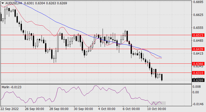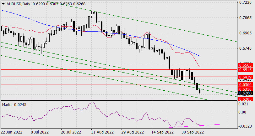 Прогноз по AUD/USD на 11 октября 2022 годаИнстаФорекс - Instaforex, 3 года назад В понедельник австралийский доллар решительно преодолел поддержки вложенных линий ценового канала недельного таймфрейма (зелёные линии). Теперь цена направляется к следующей цели – к низлежащей линии ценового канала в районе уровня 0.6205. Осциллятор Марлин начинает намекать на конвергенцию с ценой, но пока это лишь указание на то, чтобы в продажи заходить уменьшенными объёмами.