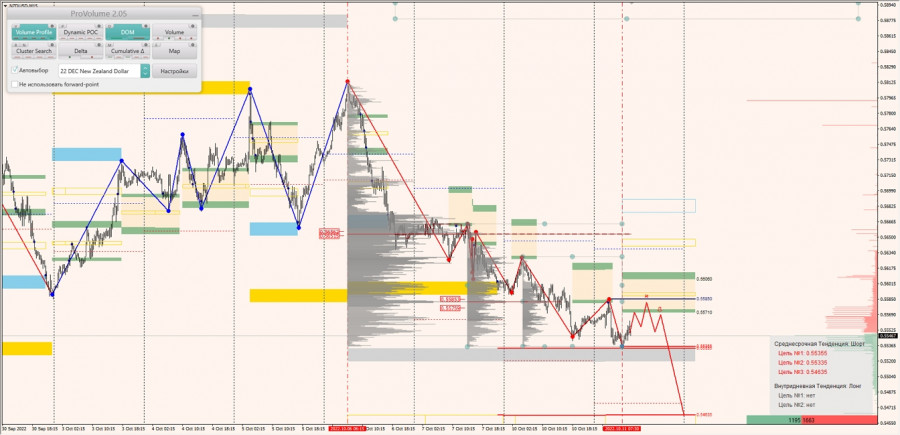 Среднесрочная тенденция: в шорт. Максимальное скопление объемов среднесрочной тенденции расположено в диапазоне по котировкам 0.56515-0.56592 и 0.55759-0.55853. В настоящий момент по паре совершаются инвестиционные операции ниже, указывая на силу продавцов.