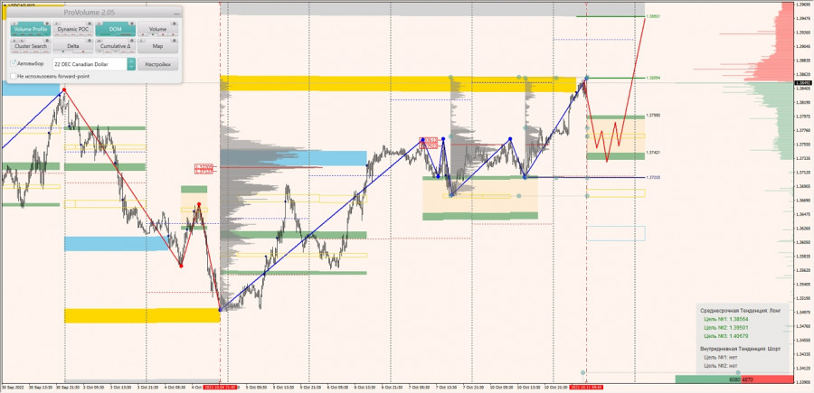 Среднесрочная тенденция: в лонг. Максимальное скопление объемов среднесрочной тенденции расположено в диапазоне по котировкам 1.37137-1.37205 и 1.37522-1.37612. В настоящий момент по паре совершаются инвестиционные операции выше, указывая на силу покупателей.
