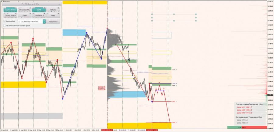 Среднесрочная тенденция: в шорт. Максимальное скопление объемов среднесрочной тенденции расположено в диапазоне по котировкам 10950.4-10975.7. В настоящий момент по Nasdaq совершаются инвестиционные операции ниже, указывая на силу продавцов.