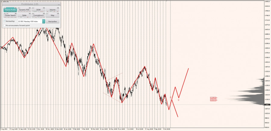 Альтернативный сценарий: при закреплении котировок индекса Nasdaq выше зоны 1/2 (11574.3) при откатах искать покупки по паттерну в новом диапазоне выгодных цен с целями: обновление максимумов и тестирование нижней границы НКЗ (11911.8).