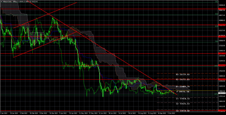 Биткоин медленно "сползает" по стеночке в преддверии отчета по инфляции в СШАИнстаФорекс - Instaforex, 3 года назад Биткоин продолжает торговаться практически в абсолютном флэте. Несколько дней назад он столкнулся на своем пути с нисходящей линией тренда на 24-часовом ТФ и с того времени плавно падает вниз, следуя точно вдоль этой линии. На текущий момент криптовалюта подошла вплотную к уровню 18 500$, от которого отскакивала уже много раз. На нашей практике, если тот или иной актив долгое время пытается преодолеть значимый уровень, то рано или поздно он его преодолеет. И это еще один фактор в пользу дальнейшего падения биткоина. Мы уже говорили, что практически все индикаторы сейчас свидетельствуют о сохранении нисходящего тренда. И даже если случится преодоление линии тренда на 24-часовом ТФ или нисходящего канала на 4-часовом, это, по сути, ничего не изменит. В этом случае биткоин останется внутри бокового канала 18 500$-24 350$, а в случае преодоления его нижней границы продолжит падение. Из ближайших важных новостей и событий, которые могут оказать влияние на движение первой криптовалюты в мире, мы можем отметить только завтрашний отчет по инфляции в США. Однако, в отличие от других аналитиков, мы не считаем, что этот отчет повлияет на действия ФРС на следующем заседании. Если инфляция покажет рост или отсутствие падения по итогам сентября, это будет лишь дополнительный стимул для ФРС сохранить свой агрессивный настрой. Если же инфляция замедлится на несколько десятых процентов, то можно будет считать, что все идет по плану: ФРС повышает ставку, инфляция снижается третий месяц подряд. Если же будет иметь место сильное снижение инфляции, то, с нашей точки зрения, это не станет поводом для отказа ФРС повышать ставку на следующем заседании на 0,75%. Инфляция не настолько замедлилась, чтобы ФРС начинала раздумывать над смягчением «ястребиного» подхода. Поэтому, по большому счету, даже завтрашний отчет по инфляции не должен оказать сильного воздействия на криптовалютный рынок. Но в то же время этот отчет может стать триггером для рынка, который уже долгое время толчется около уровня 18 500$ и рано или поздно должен либо преодолеть его, либо существенно отойти вверх, хотя бы к уровню 24 350$. На 24-часовом таймфрейме котировки битка не смогли преодолеть уровень 24 350$, но также не могут пока преодолеть и уровень 18 500$ (127,2% по Фибоначчи). Таким образом, мы имеем боковой канал, и сколько еще времени биткоин проведет в нем, непонятно. Мы рекомендуем не спешить с открытием позиций. Лучше дождаться выхода цены из этого канала, а уже потом открывать соответствующие сделки. Преодоление уровня 18 500$ откроет дорогу на 12 426$. Материал предоставлен компанией InstaForex - www.instaforex.com |