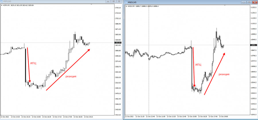 В США растёт инфляция и... АКЦИИИнстаФорекс - Instaforex, 3 года назад Акции США выросли, а доллар снизился на фоне резкого изменения настроений на риск. Доходность казначейских облигаций снизилась с максимумов, поскольку инвесторы оценили влияние последних высоких показателей инфляции на курс политики Федеральной резервной системы. Индекс S & P 500 подскочил на 2%, восстановив потери более чем на 2% на открытии, вернувшись с сессионных минимумов, при этом рост распространился на все 11 основных секторов. Высокотехнологичные индексы Nasdaq 100 и Dow Jones Industrial Average выросли более чем на 2%. Доходность по чувствительным к политике двухлетним облигациям выросла выше 4,5%, а затем снова упала. Первичная реакция трейдеров на инфляцию была логичной, но потом трейдеры выкупили падение: Показатель роста потребительских цен вырос до 40-летнего максимума в прошлом месяце, что подтверждает необходимость значительного повышения ставки ФРС в ноябре. Акции упали более чем на 25% в этом году, поскольку центральный банк начал ужесточать политику по сдерживанию инфляции, в результате чего инвесторы должны взвесить, какой ущерб нанесен ценам на акции. Последние данные подтверждают, что жесткое монетарное лекарство еще не вступило в силу, и следуют за данными по заработной плате за прошлую неделю, которые показали, что уровень безработицы в сентябре достиг пятидесятилетнего минимума. Рисковые активы весь год находились под давлением, поскольку центральные банки по всему миру пытаются обуздать стремительную инфляцию. Последние данные подтверждают, что жесткое монетарное лекарство еще не вступило в силу, и следуют за данными по заработной плате за прошлую неделю, которые показали, что уровень безработицы в сентябре достиг пятидесятилетнего минимума. "Это не тот отчет по индексу потребительских цен, на который надеялись рынки или ФРС, - сказал Джеймс Ати, директор по инвестициям abrdn. - Инфляционное давление остается стабильно высоким. Реальность такова, что в обозримом будущем ФРС будет придерживаться однозначной ястребиной позиции. Это поддержит доходность облигаций и доллар США, но это еще более плохие новости для акций". Новости на этой неделе: