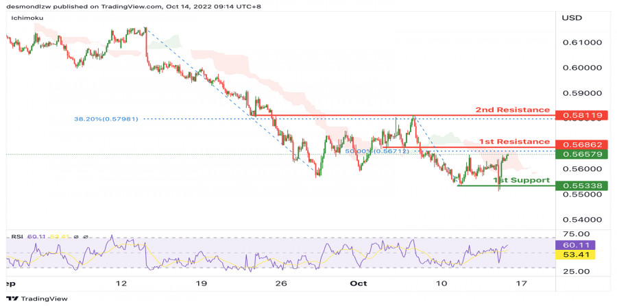 NZD/USD развивает бычий импульс. Прогноз на 14 октября 2022ИнстаФорекс - Instaforex, 3 года назад На 4-часовом графике пара NZD/USD пересекает Облако Ишимоку, а индикатор RSI поднимается выше 50. Ожидается, что цена вырастет, чтобы протестировать 1-й уровень сопротивления 0.56862, соответствующий уровню коррекции Фибоначчи 50%. После тестирования 1-го уровня сопротивления цена может упасть до 1-го уровня поддержки 0.55338, который соответствует уровню свинг-лоу. В качестве альтернативы цена может пробить 1-й уровень сопротивления и подняться до 2-го уровня сопротивления 0.58119, соответствующего 38.2% уровню коррекции Фибоначчи и перекрытию, выступающему в роли сопротивления. Торговая рекомендация Вход: 0.56862 Условия для входа: 50% уровень коррекции Фибоначчи Тейк-профит: 0.55338 Условия для фиксации прибыли: уровень свинг-лоу Стоп-лосс: 0.58119 Условия для активации ордера стоп-лосс: 38.2% уровень коррекции Фибоначчи и перекрытие, выступающее в роли сопротивления Материал предоставлен компанией InstaForex - www.instaforex.com |