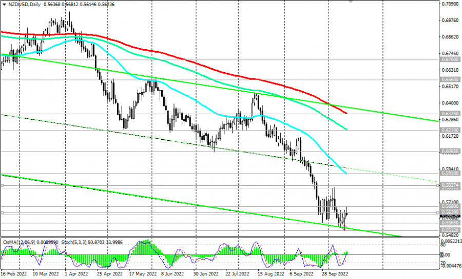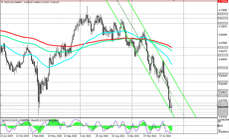 NZD/USD: накануне начала новой неделиИнстаФорекс - Instaforex, 3 года назад Как мы отметили в нашем сегодняшнем обзоре («DXY: CPI, основной прогноз прежний – дальнейший рост доллара»), основным сценарием по-прежнему остается рост доллара, в том числе на фоне большей устойчивости экономики США в сравнении с другими крупнейшими экономиками мира. Сильный бычий импульс толкает индекс доллара DXY в сторону более чем 20-летних максимумов вблизи отметок 120.00, 121.00. Пробой локальных «круглых» уровней сопротивления 114.00, 115.00 станет сигналом, говорящим о возвращении индекса DXY к росту. Следующая неделя начнётся довольно спокойно ввиду отсутствия публикации важной макро статистики вплоть до конца торгового дня в понедельник (подробнее о событиях предстоящей недели см. в Важнейшие экономические события недели 17.10.2022 – 23.10.2022). В конце же торгового дня в понедельник будет опубликована свежая информация по уровню инфляции в Новой Зеландии, а именно - индекс потребительских цен CPI (за 3-й квартал). Для участников рынка, следящих за динамикой NZD – это важная информация, поскольку публикация инфляционных индикаторов по крупнейшим экономикам мира оказывает, как правило, сильное влияние на рынки. На потребительские цены приходится большая часть общей инфляции. Рост цен заставляет центральный банк повышать процентные ставки для сдерживания инфляции, и, наоборот, при снижении инфляции или признаках дефляции (это, когда покупательская способность денег растет, а цены на товары и услуги падают) центральный банк обычно стремится девальвировать национальную валюту, понижая процентные ставки, чтобы увеличить совокупный спрос. Предыдущие значения CPI для Новой Зеландии: +1,7% (+7,3% в годовом выражении) во 2-м квартале, +1,8% (+6,9% в годовом выражении) в 1-м квартале 2022 года). Данные лучше предыдущих значений должны позитивно отразиться на NZD. В противном случае следует ожидать ослабления NZD и падения NZD/USD. Что же касается пары NZD/USD, то на текущий момент она торгуется в зоне устойчивого медвежьего рынка, ниже как краткосрочных важных уровней сопротивления 0.5640 (ЕМА200 на 1-часовом графике), 0.5827 (ЕМА200 на 4-часовом графике), так и среднесрочного 0.5910 (ЕМА50 на дневном графике). В целом преобладает нисходящая динамика NZD/USD, в то время как пара остается в зоне долгосрочного медвежьего рынка - ниже ключевых уровней сопротивления 0.6700 (ЕМА200 на недельном графике), 0.6325 (ЕМА200 на дневном графике). Лишь их пробой вновь выведет пару в зону долгосрочного бычьего рынка. *) об особенностях торговли NZD также см. в статьях