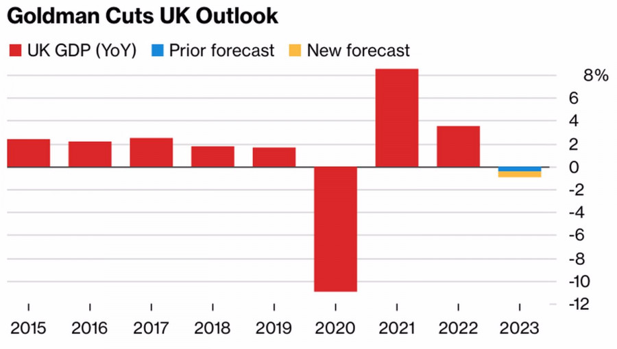 Фунт прошел по дороге позораИнстаФорекс - Instaforex, 3 года назад Пока представители правительства Британии выстроились в очередь на дороге позора, фунт сумел вернуться к росту после распродаж в конце недели к 14 октября. Они были вызваны прекращением программы количественного смягчения от Банка Англии на £65 млрд. Рынки настолько привыкли, что нечто временное от Центробанка становится полупостоянным, что были сильно разочарованы, что на этот раз все пошло не так. Пока BoE пытается заменить QE программой РЕПО, предусматривающий покупки облигаций с их последующей продажей, прекрасно понимая, что одновременно ужесточать и ослаблять денежно-кредитную политику долгое время невозможно, члены Кабинета министров упорно твердят одну и ту же мантру. Налоги будут понижаться не так быстро, как многие бы этого хотели, а фискальный стимул без увеличения займов и долгов невозможен. Уменьшать налоги нужно таким образом, чтобы люди увидели, что правительство может себе это позволить. Последними каплями в море потрясений финансовых рынков стала смена Канцлера Казначейства и заявление Лиз Трасс, что корпоративный налог в 2023 вырастет с 19% до 25%. Инвесторы поняли, что новое правительство после ошибочного мини-бюджета приняло решение синхронизировать монетарную и фискальную политику. Это благоприятно отразилось на долговом рынке и GBPUSD. Впрочем, стабилизация пары, вероятнее всего, будет временным явлением. Goldman Sachs отмечает, что как только пыль уляжется, то бишь рынки успокоятся, возникнут разговоры, что ставка РЕПО вырастет не так быстро, как в настоящее время ожидается, что уронит стерлинг к $1,05. Тот же Goldman Sachs со ссылкой на увеличение корпоративного налога срезал прогноз роста ВВП Британии на 2023 с -0,4% до -1%. Базовая инфляция на конец следующего года ожидается на уровне 3,1%, а не 3,3%. Динамика ВВП Британии По мнению 47% из 452 инвесторов-участников опроса MLIV Pulse, наибольшие шансы столкнуться со спадом имеет именно Туманный Альбион. Вероятность, что первой в рецессию угодит еврозона составляют 45%, США – 7%. Что касается инфляции, то релиз данных по потребительским ценам станет ключевым событием экономического календаря Британии на неделе к 21 октября. Эксперты Bloomberg ожидают ускорения CPI с 9,9% до 10% в сентябре. Темпы базовой инфляции вырастет с 6,3% до 6,4%, что является максимальной отметкой с 1992. Такая динамика индикаторов на бумаге должна увеличить агрессию Банка Англии, а вместе с ней и шансы на повышение ставки РЕПО на 100 б.п. в ноябре, что теоретически может поддержать GBPUSD. Впрочем, в условиях неразберихи на финансовых рынках и слухов об отставке Лиз Трасс укрепление стерлинга на макростатистике выглядит маловероятным. Технически на дневном графике GBPUSD имеет место перевернутый паттерн 1-2-3. Прорыв диагонального сопротивления вблизи 1,136 может стать поводом для покупки. Пока этого не произошло, сохраняем акцент на продажи. В том числе в случае успешного штурма поддержки на 1,116. Материал предоставлен компанией InstaForex - www.instaforex.com |