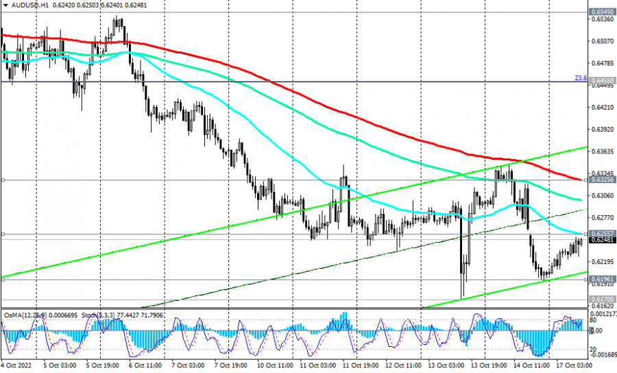 AUD/USD: технический анализ и торговые рекомендации на 17.10.2022ИнстаФорекс - Instaforex, 3 года назад Как мы отметили в нашем сегодняшнем «Фундаментальном анализе», на момент публикации данной статьи AUD/USD торгуется вблизи отметки 0.6250, чуть ниже первого заметного уровня сопротивления 0.6255 (ЕМА200 на 15-минутном графике). Учитывая сильный медвежий импульс общую нисходящую динамику AUD/USD, можно ожидать отбоя и возобновления снижения уже вблизи данного уровня сопротивления. Если же он будет пробит, то следующим пунктом восходящей коррекции будет отметка 0.6325 (через нее проходит уровень сопротивления в виде 200-периодной скользящей средней на 1-часовом графике). Но даже и после его теоретически возможного пробоя коррекционный рост AUD/USD будет ограничен, по нашему мнению, важными уровнями сопротивления 0.6545, 0.6600, 0.6620 (ЕМА50 на дневном графике). В основном сценарии мы ожидаем отбоя от текущих отметок и возобновление снижения. Более консервативные продавцы AUD/USD, вероятно, решат дождаться пробоя локальных уровней поддержки 0.6200, 0.6170. *) о событиях предстоящей недели см. в Важнейшие экономические события недели 17.10.2022 – 23.10.2022 **) об особенностях торговли парой AUD/USD см. в статье AUD/USD: валютная пара (характеристики, рекомендации) Уровни поддержки: 0.6200, 0.6170, 0.5975, 0.5665, 0.5510 Уровни сопротивления: 0.6255, 0.6325, 0.6455, 0.6500, 0.6545, 0.6620, 0.6685