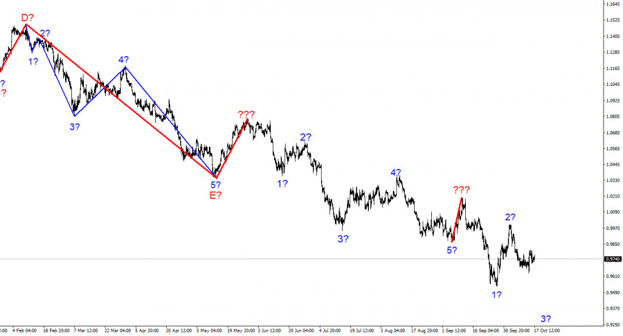 Анализ EUR/USD. 17 октября. Спасет ли евровалюту повышение ставки ЕЦБ?ИнстаФорекс - Instaforex, 3 года назад Волновая разметка 4-часового графика для инструмента Евро/Доллар на данный момент по-прежнему не требует внесения коррективов, но, несомненно, усложняется и может усложниться еще не один раз в будущем. Мы увидели завершение построения очередной пяти волновой импульсной нисходящей структуры волн, потом одну коррекционную волну вверх (отмечена жирной линией), после чего были обновлены лоу волны 5. Эти движения позволяют мне сделать вывод, что повторилась картина пятимесячной давности, когда точно также была завершена 5-волновая структура вниз, одна волна вверх и мы увидели еще пять волн вниз. Ни о какой классической структуре волн (5 волн трендовых, 3 коррекционных) сейчас и речи не идет. Новостной фон такой, что рынок даже одиночные коррекционные волны строит с большой неохотой. Таким образом, в таких обстоятельствах я не могу спрогнозировать завершение понижательного участка тренда. Мы можем еще очень долго наблюдать картину «сильная волна вниз - слабая коррекционная волна вверх». Цели нисходящего участка тренда, который усложнялся и удлинялся уже много раз, могут быть расположены вплоть до 90 фигуры, а может быть и еще ниже. В данное время может строиться (предположительно) волна 3 нисходящего участка тренда, но нисходящий участок может трансформироваться и в восходящий. Любое повышение ставки ЕЦБ не окажет сильной поддержки евроИнструмент Евро/Доллар в понедельник двигался с минимальной амплитудой всего в 1-2 десятка пунктов. Таким образом, за последние несколько дней волновая картина совершенно не изменилась. Следовательно, я не могу сделать никаких новых выводов. Новостной фон в понедельник отсутствует, чем и объясняется практически нулевая активность рынка. На этой неделе выйдет отчет по европейской инфляции, но это будет лишь в среду. А до среды амплитуда может сохраняться очень низкой. Как я уже говорил, сейчас крайне важно понять, какая из двух волновых разметок (по британцу или по европейцу) изменится. Фунт и евро очень вряд ли будут двигаться в разных направлениях, но текущие разметки подразумевают как раз это. Движения последних дней не позволяют внести никаких дополнений, поэтому измениться может любая, а инструмент может с текущих позиций двинуться в любую сторону. Рынок сознательно взял паузу, потому что и сам не понимает до конца, стоит ли ему продолжать продажи евровалюты? С одной стороны, новостной фон остается негативным для этой валюты. С другой стороны, нисходящий участок тренда не может усложняться вечно. Я рассчитываю, что следующие заседания ЕЦБ и ФРС станут резонансными для рынка. Если от ЕЦБ ждут еще многих повышений процентной ставки, то ФРС потихоньку приближается к тому моменту, когда ставку повышать будет уже некуда. Мне кажется, если ФРС начнет подавать сигналы о том, что завершение цикла повышения ставки близко, спрос на американскую валюту может начать снижаться. Именно в этом я и вижу шанс для евро. Общие выводыИсходя из проведенного анализа, я делаю вывод, что построение нисходящего участка тренда продолжается, но может завершиться в любой момент. В данное время инструмент может строить новую импульсную волну, поэтому советую продажи с целями, расположенными около расчетной отметки 0,9397, что при
