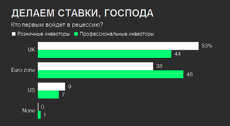 Трейдеры ставят на то, что США быстро воспрянут после рецессии... они могут промахнутьсяИнстаФорекс - Instaforex, 3 года назад Инвесторы смотрят дальше надвигающейся глобальной рецессии и рассчитывают, что финансовые рынки США быстро вырастут после рецессии, тогда как зону ЕС ждет более ранний вход и отсроченный выход. Так ли это? Давайте разбираться. Трейдеры ставят на то, что США быстро воспрянут после рецессии... они могут промахнуться Исследовательская компания MLIV Pulse провела масштабный опрос по поводу отдаленных перспектив мирового рынка. По мнению респондентов, акции и облигации США выйдут из нынешней волны рыночных потрясений. Возможно, даже без выраженной рецессии. В то же время они считают, что можно сделать ставку на то, что первой постигнет спад экономики Великобритании или еврозоны. Около 47% опрошенных ожидают, что Великобритания выиграет гонку за право первой рухнуть в яму, и это сигнализирует о более высоких рисках для финансовой стабильности в этой стране. Тогда как 45% считают, что первой «посыплется» Европа. Только 7% считают, что экономика США войдет в крутое пике первой. И подъем в Америке, и затянувшийся спад в Европе будут представлять разные наборы рисков для благосостояния и неравенства доходов, а также разные варианты развития событий на биржевых ристалищах. Это не лишено оснований. Во-первых, трансатлантический разрыв нивелирует вес военных действий на Украине и следующий за ними энергетический кризис, который крепко давит на экономическое состояние в Европе. Эффекты военных конфликтов смазаны в США, это так. Рассчитывая на такой вариант, как мягкая и поздняя рецессия, многие инвесторы считают, что Федеральный резерв первым остановит цикл повышения процентных ставок. Голоса за то, что это будет именно ФРС, а не Евробанк или Банк Англии, разделились поровну. Более того, я соглашусь с тем, что любой спад может оказаться длительным испытанием для Европы и Великобритании, в то время как подавляющее большинство инвесторов (около 70%) говорят, что США лучше всех переживут шторм и станут относительным победителем среди крупные экономики от серийных кризисов этого года. Из этих выводов мы видим очевидные последствия для распределения активов: укрепление доллара на фоне падения остальной корзины валют. Однако я сильно сомневаюсь, что выигрыш США будет настолько быстрым и чистым. Несомненно, первой причиной служит падение экспорта. Чем сильнее рецессия надавит на трансатлантических партнеров, чем дороже будет доллар, тем меньше купят товаров и сырья в США. Если рецессия окажется воистину ужасной, вероятнее всего, рынки даже задумаются о том, чтобы создать доллару противовес, а лучше несколько, поскольку гегемония доллара сама по себе, независимо от рыночных условий, создает слишком большой перекос в финансовых потоках. И думается мне, что Курода уже этим вопросом занялся вплотную. Но это еще не все. Пенсионные планы американцев полностью зависят от удачливости инвестиций инвестфондов, которые управляют этими деньгами. И здесь рецессия может сыграть злую шутку с пожилыми американцами, оставив без накоплений все нынешнее поколение бумеров. Это не кажется огромной проблемой, пока вы не столкнетесь в новостях с сообщениями о том, что пенсионеры поджигают себя у зданий администрации, а рабочие устраивают массовые за