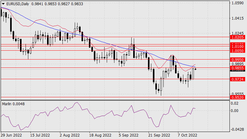 Сегодня публикуются данные по промышленному производству в США за сентябрь. Прогноз 0,1% против -0,2% в августе. И если данные помогут евро преодолеть текущее сопротивление 0.9855, то это и станет показателем настроя инвесторов на ближайшие дни (рост аппетитов к риску).