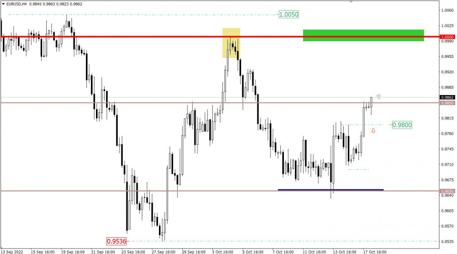 Новый министр финансов Великобритании Джереми Хант заявил, что озвученные ранее планы Лиз Трасс по снижению налогов и росту субсидий не будут осуществлены. Ожидается, что это позволит властям сэкономить порядком 32 млрд фунтов стерлингов. Этот новостной поток толкает фунт вверх, а через положительную корреляцию евро также растет. Разбор торговых графиков от 17 октябряВалютная пара EURUSD в ходе восходящего движения обновила максимум минувшей недели. Вследствие чего возник технический сигнал о смене торговых интересов, что привело к росту объема длинных позиций по евро. Валютная пара GBPUSD возобновила восходящий цикл, вследствие чего котировка в очередной раз задела район сопротивления 1.1410/1.1525. Третье подряд сближение цены с районом сопротивления указывает на высокое стремление трейдеров удержать на рынке восходящий цикл. Экономический календарь на 18 октябряСегодня ожидается публикация данных промышленному производству в Соединенных Штатах, темп роста которых может замедлиться с 3,7% до 3,4%. Эта статистика может оказать давление на долларовые позиции. Временной таргетинг Объем промышленного производства США – 16:15 по МСК Торговый план – ЕВРО/ДОЛЛАР 18 октябряСтабильное удержание цены выше значения 0.9850 в перспективе может открыть путь по направлению уровня паритета. В противном случае застой в пределах действующего значения может привести к отскоку цены по направлению переменного уровня 0.9700.Торговый план – ФУНТ/ДОЛЛАР 18 октябряС точки зрения технического анализа район сопротивления все еще оказывает давление на покупателей, но все может измениться в случае удержания цены выше отметки 1.1525 в четырехчасовом периоде. При этом сценарии объем длинных позиций может увеличиться на рынке, что приведет к последующему рост стоимости фунта стерлингов. До тех пор нельзя исключать сценарий отскока цены от района сопротивления. Что отражено на торговых графиках?