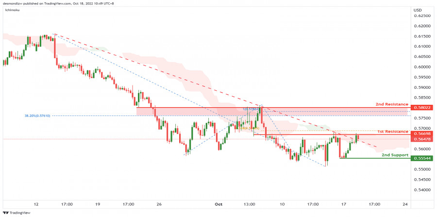 NZD/USD развивает бычий импульс. Прогноз на 18 октября 2022ИнстаФорекс - Instaforex, 3 года назад На 4-часовом графике пара NZD/USD пробивает облако Ишимоку и нисходящую линию тренда. Если цена сможет пробить 1-й уровень сопротивления, она укрепится до 2-го уровня сопротивления 0.58022, соответствующего предыдущему уровню свинг-хай, 100% проекции Фибоначчи и 38.2% уровню коррекции Фибоначчи. В качестве альтернативы цена может упасть к 1-му уровню поддержки 0.55399, где расположен уровень свинг-лоу, выступающий в качестве поддержки. Торговая рекомендация Вход: 0.56698 Условия для входа: текущий уровень свинг-хай, выступающий в качестве сопротивления, и 61.8% уровень коррекции Фибоначчи Тейк-профит: 0.58022 Условия для фиксации прибыли: предыдущий уровень свинг-хай, 100% проекция Фибоначчи и 38.2% уровень коррекции Фибоначчи Стоп-лосс: 0.55544 Условия для активации ордера стоп-лосс: уровень свинг-лоу Материал предоставлен компанией InstaForex - www.instaforex.com |