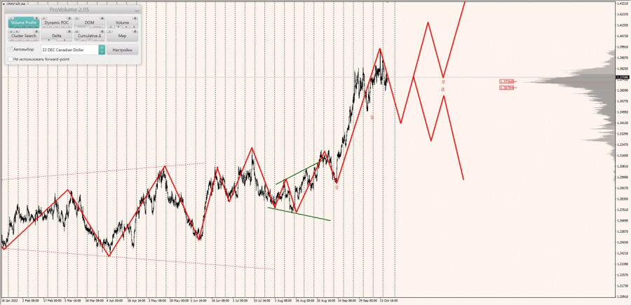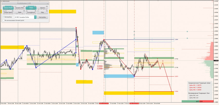 Среднесрочная тенденция: в шорт. Максимальное скопление объемов среднесрочной тенденции расположено в диапазоне по котировкам 1.37099-1.37251. В настоящий момент по паре совершаются инвестиционные операции выше, указывая на слабость продавцов.