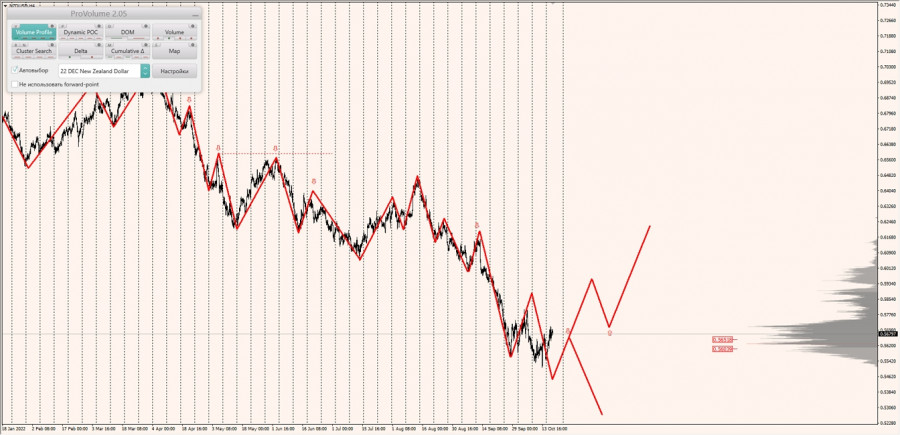 Долгосрочная тенденция: в шорт. Максимальное скопление объемов текущего контракта расположено в диапазоне по котировкам 0.56039-0.56518. В настоящий момент по паре совершаются инвестиционные операции выше, указывая на слабость продавцов.