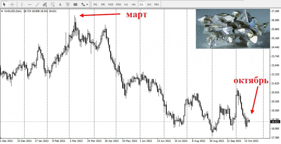 Серебро пережило гораздо более глубокое падение с максимумов марта этого года, до текущих цен. Это снижение цены или потеря стоимости более 32% за унцию серебра.