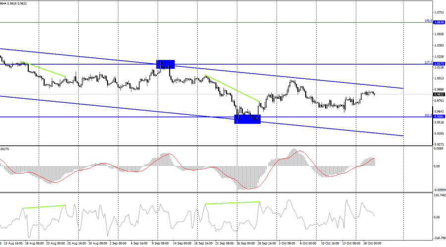 EUR/USD. 19 октября. Евро не понимает, почему он должен расти?ИнстаФорекс - Instaforex, 3 года назад Добрый день, уважаемые трейдеры! Пара EUR/USD во вторник на часовом графике двигалась горизонтально, взяв паузу перед отчетом по инфляции в Евросоюзе. Таким образом, после закрепления над уровнем 0,9782 вероятность дальнейшего роста евро в направлении уровня коррекции 323,6% - 0,9963 сохраняется, но закрытие под уровнем 0,9782 сработает в пользу доллара США и возобновления падения в направлении уровня Фибо 423,6% - 0,9585.Хочу отметить, что европейская валюта выросла примерно на 230 пипсов в течение последних нескольких дней, но стоит также учитывать и тот период (всю прошлую неделю), когда пара двигалась горизонтально. С моей точки зрения, у евровалюты было достаточно времени, чтобы начать или продолжить рост. Но в очередной раз трейдеры-быки не воспользовались предоставленной возможностью. Информационный фон на этой неделе очень слабый. Сегодня выйдет отчет по европейской инфляции за сентябрь, но в Евросоюзе каждый отчет по инфляции выходит в двух оценках. Сегодня – вторая. Она редко когда отличается от первой оценки, поэтому, вероятнее всего, трейдеры увидят сегодня окончательный рост индекса потребительских цен до двузначного значения 10%. На фоне разговоров о том, что ЕЦБ не сможет угнаться за ФРС и повысить ставку до 4-4,5%, возникают сомнения в способности регулятора обуздать инфляцию и вернуть ее к 2%. На мой взгляд, этот фактор может вернуть медведей на рынок. По слухам, ЕЦБ не готов даже на следующем заседании повысить процентную ставку на 0,75%, что было бы очень кстати, учитывая, что инфляция не перестает расти. Если эти слухи подтвердятся, это будет означать, что ЕЦБ смягчает свой «ястребиный» настрой, сформировавшийся в последние несколько месяцев. Слишком рано смягчает, так как инфляция даже притормаживать еще не начала. Таким образом, я по-прежнему считаю, что падение европейской валюты возобновится. Ей понадобится очень сильный информационный фон в свою поддержку, чтобы продолжить рост. На 4-часовом графике пара выполнила разворот в пользу валюты ЕС и начала новый процесс роста в направлении верхней линии нисходящего трендового коридора. Однако настроение трейдеров на этом графике остается «медвежьим» без каких-либо вопросов. Лишь закрепление над нисходящим коридором позволит рассчитывать на ощутимый рост евровалюты в направлении уровня коррекции 127,2% - 1,0173. Отбой от верхней линии коридора сработает в пользу возобновления падения в направлении уровня Фибо 161,8% - 0,9581. Отчет Commitments of Traders (COT):
