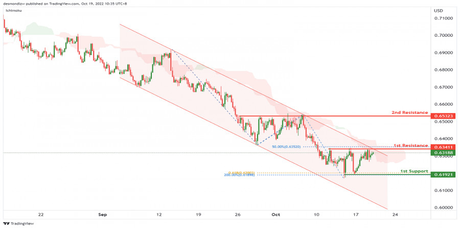 AUD/USD: ожидается формирование бычьего импульса. Прогноз на 19 октября 2022ИнстаФорекс - Instaforex, 3 года назад На 4-часовом графике пара AUD/USD разворачивается от 1-го уровня поддержки, при этом цена находится ниже нисходящего канала и облака Ишимоку. Ожидается, что цена протестирует 1-й уровень сопротивления 0.63411, соответствующий уровням коррекции Фибоначчи 23.6% и 50%. Если 1-й уровень сопротивления будет пробит, бычий импульс направит цену ко 2-му уровню сопротивления 0.65323, который соответствует перекрытию, выступающему в качестве сопротивления. В качестве альтернативы цена может упасть к 1-му уровню поддержки 0.61921, соответствующему предыдущему уровню свинг-лоу, проекции Фибоначчи 61.8% и уровню расширения Фибоначчи 200%. Торговая рекомендация Вход: 0.63411. Условия для входа: 23.6% уровень коррекции Фибоначчи и 50% уровень коррекции Фибоначчи. Тейк-профит: 0.65323. Условия для фиксации прибыли: перекрытие, выступающее в качестве сопротивления. Стоп-лосс: 0.61921. Условия для активации ордера стоп-лосс: предыдущий уровень свинг-лоу. Материал предоставлен компанией InstaForex - www.instaforex.com |