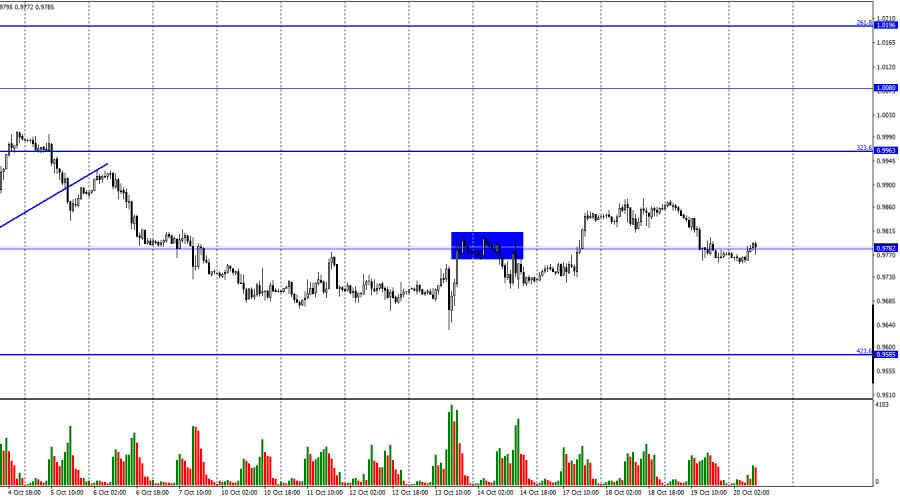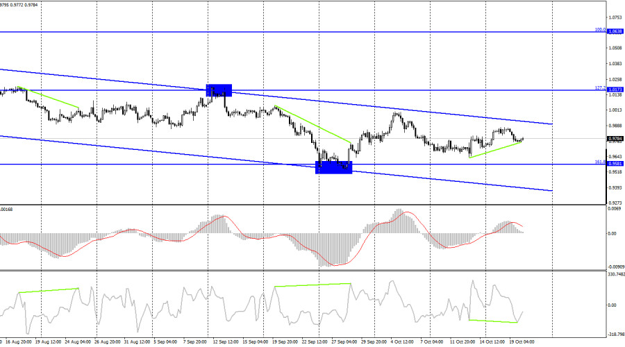 EUR/USD. 20 октября. Скучное завершение недели, новое падение евровалютыИнстаФорекс - Instaforex, 3 года назад Добрый день, уважаемые трейдеры! Пара EUR/USD в среду выполнила разворот в пользу американской валюты и падение к уровню 0,9782. Ни отбоя, ни уверенного закрепления под этим уровнем не произошло. Таким образом, сигналов к покупкам или продажам нет. Тем не менее в очередной раз отмечу, что трейдеры-быки не спешат возвращаться на рынок. Информационный фон остается достаточно негативным для евровалюты, и реакция трейдеров на него очевидна при взгляде на любой график. Вчера в Евросоюзе вышел отчет по инфляции, который можно трактовать как угодно. Инфляция выросла в годовом выражении до 9,9%, базовая инфляция – до 4,8% г/г. Таким образом, можно констатировать, что все усилия ЕЦБ пока бессмысленны – инфляция продолжает расти. В то же время инфляция выросла чуть меньше, чем ожидали трейдеры, что хоть и небольшая, но все же ложка меда в бочке дегтя. На мой взгляд то, что инфляция ускорилась чуть меньше, чем ожидалось (всего на 0,1%), не может вообще считаться позитивным фактором для евро. Точно так же, как не может считаться позитивным и сам рост инфляции в сентябре. Инфляция – это само по себе негативное явление для экономики. Однако инфляция тесно связана с денежно-кредитной политикой центрального банка и в такое время, как сейчас, регулятор будет на основании отчета по инфляции менять свою ДКП. Это суждение справедливо на 100%, но не справедливо то предположение, что трейдеры будут покупать евро на повышении ожиданий нового роста процентной ставки. ЕЦБ дважды поднял ставку на 0,50% и 0,75%, но позитивного эффекта эти изменения на евро не возымели. Трейдеры опасаются, что ЕЦБ повысит ставку еще 1-2 раза и все. А этого не хватит, чтобы инфляция даже просто перестала ускоряться. Таким образом, европейская валюта по-прежнему склонна к падению. В разрезе одного дня или недели она может показать рост, но в более долгосрочном плане я думаю мы увидим новое падение. На 4-часовом графике пара выполнила разворот в пользу валюты ЕС и начала новый процесс роста в направлении верхней линии нисходящего трендового коридора. Однако настроение трейдеров на этом графике остается «медвежьим» без каких-либо вопросов. Лишь закрепление над нисходящим коридором позволит рассчитывать на ощутимый рост евровалюты в направлении уровня коррекции 127,2% - 1,0173. Отбой от верхней линии коридора сработает в пользу возобновления падения в направлении уровня Фибо 161,8% - 0,9581. «Бычья» дивергенция у индикатора CCI повышает шансы на продолжение роста пары. Отчет Commitments of Traders (COT):