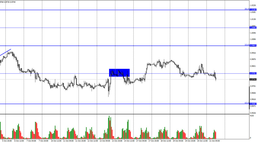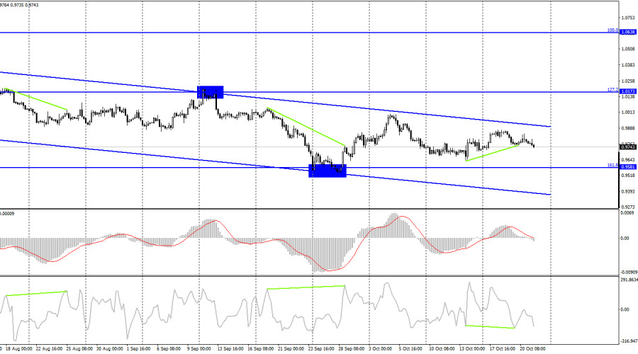EUR/USD. 21 октября. ЕЦБ пока проигрывает ФРС, и проиграет битвуИнстаФорекс - Instaforex, 3 года назад Добрый день, уважаемые трейдеры! Пара EUR/USD в четверг выполнила закрепление под уровнем 0,9782, что повышает шансы на продолжение падения в направлении следующего уровня коррекции 423,6% - 0,9585. В течение двух последних недель евровалюта «ходила по мукам», стараясь хоть немного подрасти. Однако трейдеров-быков на рынке не прибавилось и сейчас есть реальные шансы на возобновление падения. Не того, что на часовом графике, а того, что на дневном. То есть глобального тренда. На мой взгляд именно на этой неделе те трейдеры, которые хотя бы допускали дальнейший рост евровалюты, отказались от этого мировоззрения. Все потому, что стала стабильно поступать информация о неспособности и неготовности европейского регулятора повышать ставку до тех пор, пока инфляция не начнет замедляться. Иными словами, сейчас ставка ЕЦБ составляет 1,25%, а инфляция растет. Никто не сомневается в том, что ЕЦБ повысит ставку еще один-два-три раза, но что если и эти меры не приведут к значительному падению ИПЦ? Будет ли готов регулятор продолжать повышать ставку в четвертый, пятый, шестой раз? Трейдеры считают, что нет, и я в том числе. Ставка - это один из ключевых инструментов воздействия на экономику. Если ставка меняется, то влияет это не только на инфляцию, а и на стоимость заимствований, ставки по депозитам, кредитам, потоки инвестиций в страну и из нее. Чем выше ставка, тем сильнее инвесторы склонны к накоплениям и сбережениям, а не к инвестициям. Следовательно, происходит торможение экономики. И ЕЦБ не может игнорировать этот факт. Одно дело, когда речь идет о небольшом торможении, но чтобы вернуть инфляцию к 2%, нужно повысит ставку до 4-5%. А при таком значении торможение экономики не будет маленьким. Также не стоит забывать и о том, что в Евросоюзе полным-полно проблемных стран, которые еле-еле пережили пандемию и имеют огромные государственные долги. Если ставка будет расти слишком сильно, их долги также будут расти. Именно на основании этих рассуждений трейдеры и не верят в то, что ЕЦБ способен побороть инфляцию, а вот ФРС – способен. На 4-часовом графике пара продолжает процесс роста в направлении верхней линии нисходящего трендового коридора. Однако настроение трейдеров на этом графике остается «медвежьим» без каких-либо вопросов. Лишь закрепление над нисходящим коридором позволит рассчитывать на ощутимый рост евровалюты в направлении уровня коррекции 127,2% - 1,0173. Отбой от верхней линии коридора сработает в пользу возобновления падения в направлении уровня Фибо 161,8% - 0,9581. «Бычья» дивергенция у индикатора CCI уже отменилась. Отчет Commitments of Traders (COT):