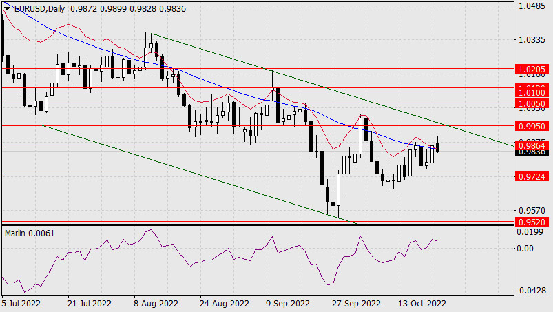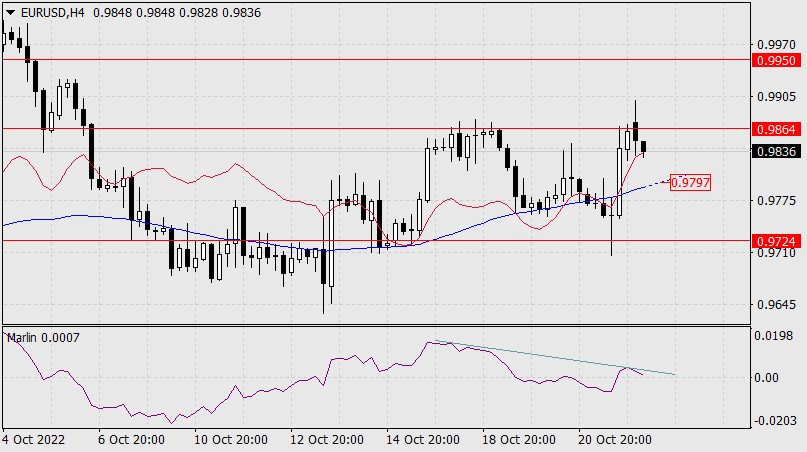 Прогноз по EUR/USD на 24 октября 2022 годаИнстаФорекс - Instaforex, 3 года назад В пятницу глава ФРБ Сан-Франциско Мэри Дейли заявила, что высокий темп повышения ставки тормозит экономику, этот темп нужно замедлить. Как результат, доходность по государственным облигациям упала, фондовые индексы подросли, а евро закрыл день ростом на 75 пунктов. Котировка единой валюты вновь отработала сопротивление 0.9864 и индикаторную линию Крузенштерна. ЕЦБ 27-го числа повышает ставку, но мы пока сомневаемся в готовности рынка так быстро переключиться с главенствующей роли ФРС в ценообразовании евро на ведущую позицию ЕЦБ. Уже сегодня выйдут показатели деловой активности еврозоны за октябрь, по ним прогнозируется спад.