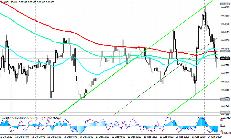 AUD/USD: технический анализ и торговые рекомендации на 24.10.2022ИнстаФорекс - Instaforex, 3 года назад Как мы отметили в нашем сегодняшнем «Фундаментальном анализе», на момент публикации данной статьи AUD/USD «торгуется вблизи отметки 0.6292, пробив сильный краткосрочный уровень поддержки 0.6308 (ЕМА200 на 1-часовом графике). Учитывая сильный медвежий импульс и общую нисходящую динамику AUD/USD, можно ожидать дальнейшего снижения. Более консервативные продавцы AUD/USD, вероятно, решат дождаться пробоя сегодняшнего внутридневного минимума 0.6273. В альтернативном сценарии AUD/USD после пробоя уровня сопротивления 0.6308 возобновит коррекционный рост с целями на уровнях сопротивления 0.6415, 0.6455, 0.6477 (ЕМА200 на 4-часовом графике). Рост выше уровня сопротивления 0.6545 (локальные максимумы и ЕМА50 на дневном графике) маловероятен. *) о событиях предстоящей недели см. в Важнейшие экономические события недели 24.10.2022 – 30.10.2022 **) об особенностях торговли парой AUD/USD см. в статье AUD/USD: валютная пара (характеристики, рекомендации) Уровни поддержки: 0.6273, 0.6200, 0.6170, 0.5975, 0.5665, 0.5510 Уровни сопротивления: 0.6308, 0.6400, 0.6415, 0.6455, 0.6477, 0.6500, 0.6545