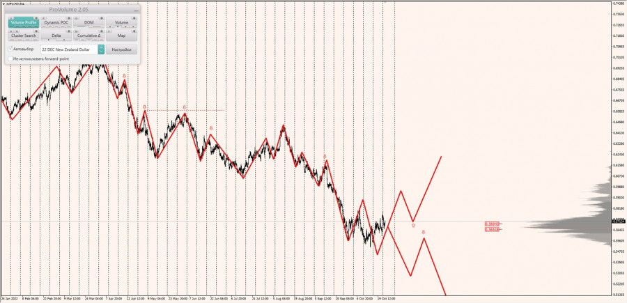 Долгосрочная тенденция: в шорт. Максимальное скопление объемов текущего контракта расположено в диапазоне по котировкам 0.56518-0.56943. В настоящий момент по паре совершаются инвестиционные операции выше, указывая на слабость продавцов.